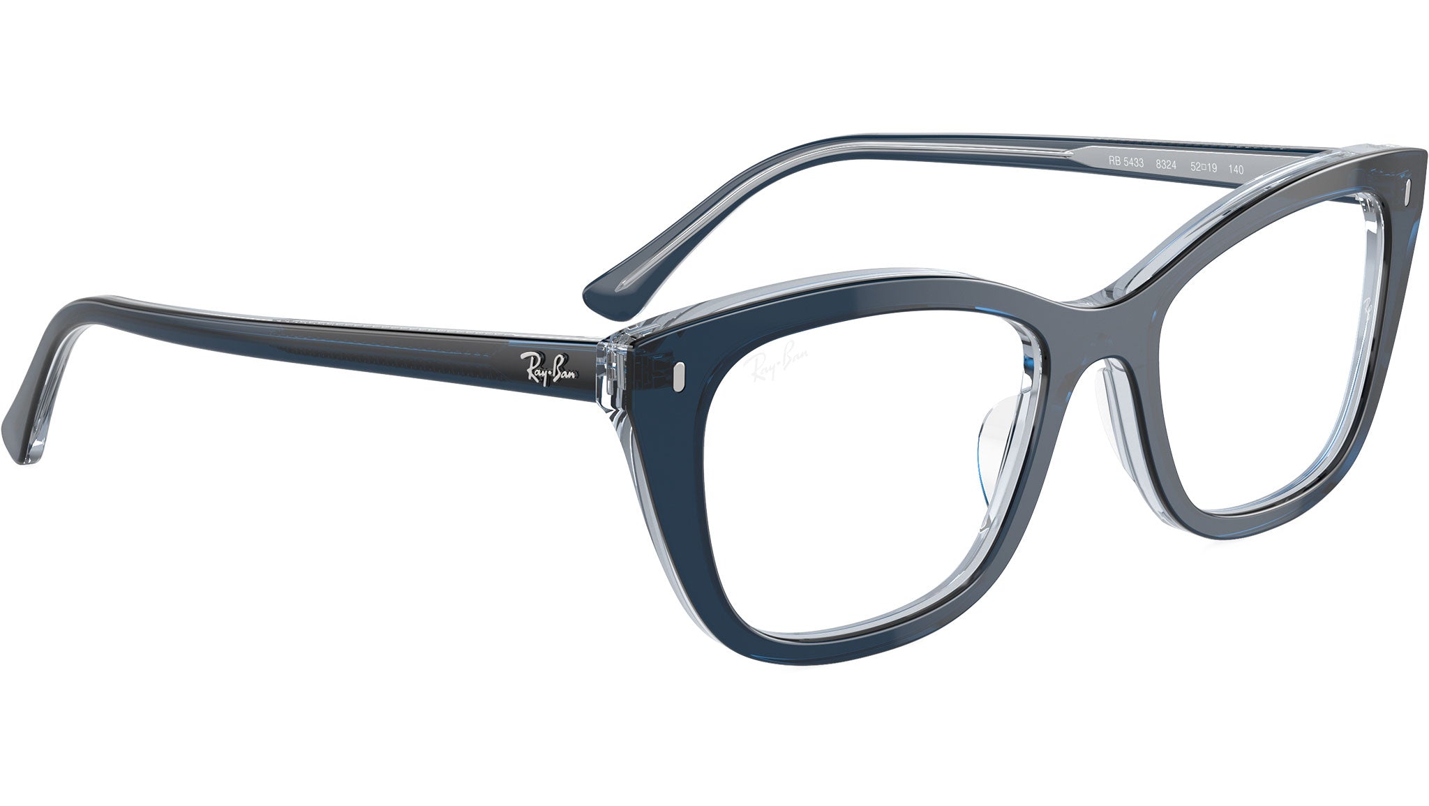 Occhiali da vista Ray-Ban RB5433 Optics RB5433 8324 unisex con montatura d-frame in acetato blu su blu trasparente e lenti demo. Vestibilità a ponte alto. Linea: Core. Codice modello: 0RX5433. Codice colore: 8324. Rivenditore autorizzato Ray-Ban online. Gli occhiali vengono consegnati con custodia e accessori originali e sono coperti dalla garanzia ufficiale di 12 mesi del produttore.