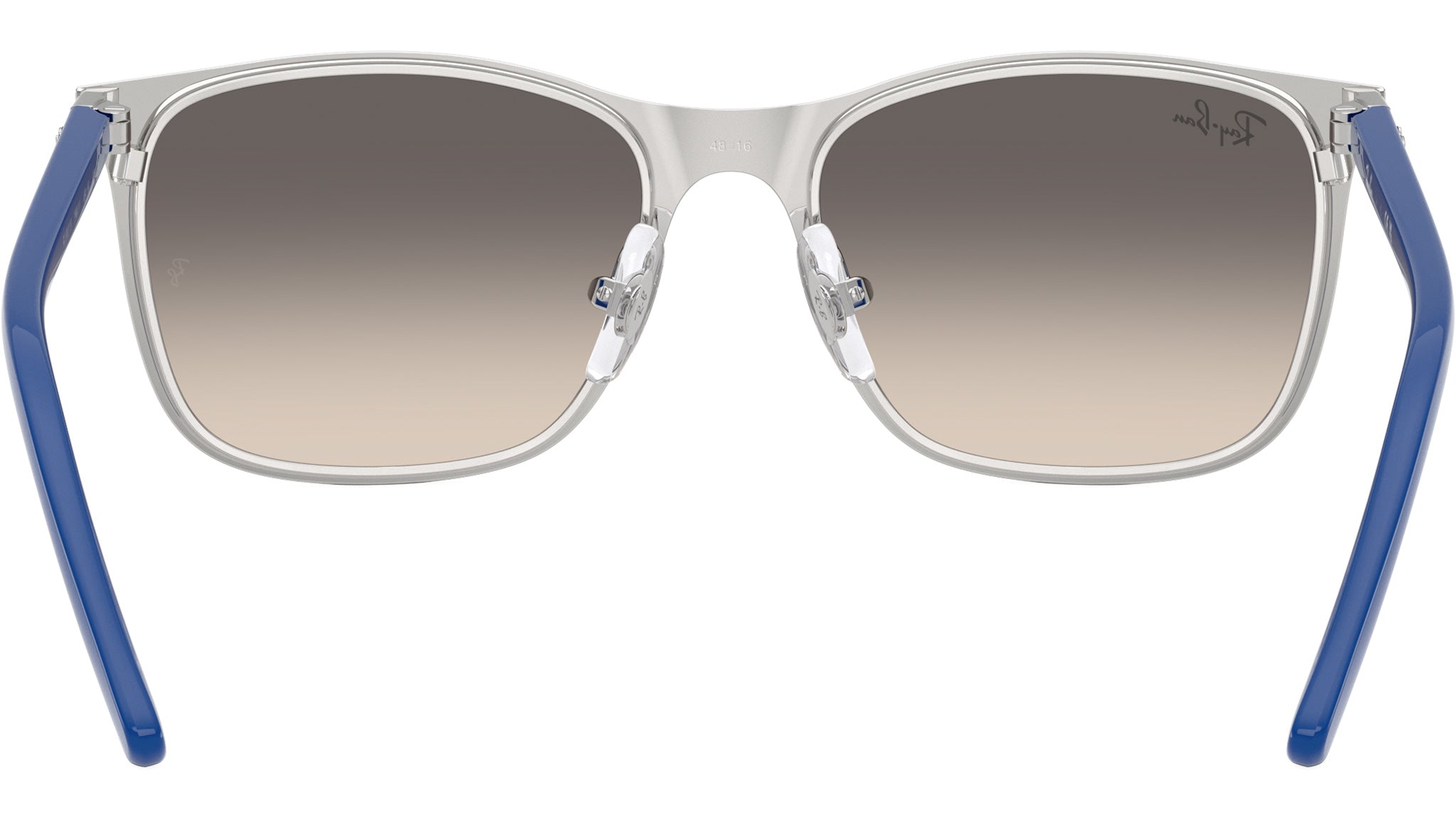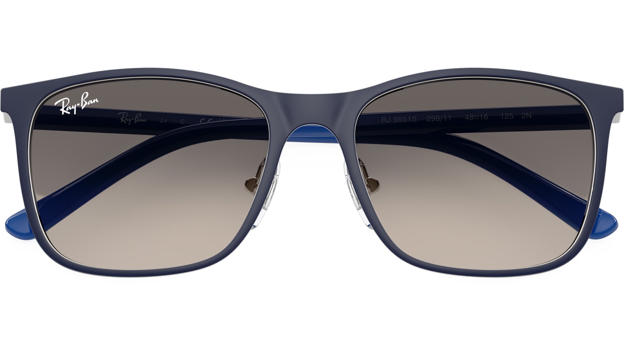 Occhiali da sole Ray-Ban Junior RJ9551S 298/11 unisex con montatura squadrata in metallo blu su argento e lenti in policarbonato color grigio sfumato. Naselli regolabili. Linea: Kids Innovation. Codice modello: 0RJ9551S. Codice colore: 298/11. Rivenditore autorizzato Ray-Ban online. Gli occhiali vengono consegnati con custodia e accessori originali e sono coperti dalla garanzia ufficiale di 12 mesi del produttore.
