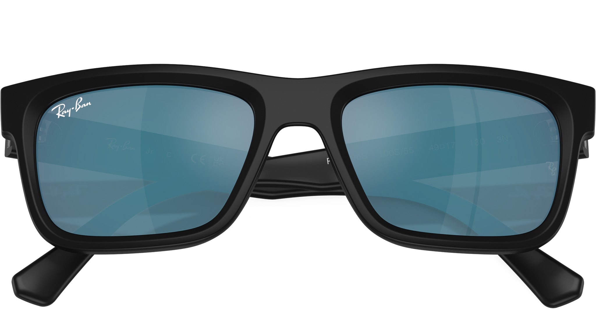 Occhiali da sole Ray-Ban Junior RJ9196S 100S55 unisex con montatura rettangolare in iniettato nero opaco e lenti in bio poliammide color blu scuro specchio blu. Vestibilità a ponte alto. Linea: Kids Icons. Codice modello: 0RJ9196S. Codice colore: 100S55. Rivenditore autorizzato Ray-Ban online. Gli occhiali vengono consegnati con custodia e accessori originali e sono coperti dalla garanzia ufficiale di 12 mesi del produttore.
