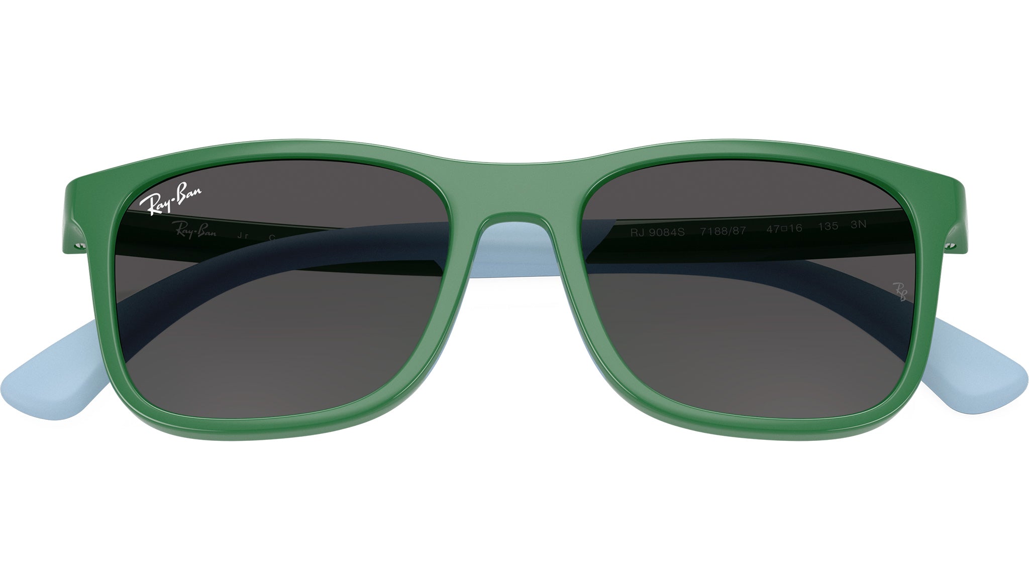 Occhiali da sole Ray-Ban Junior RJ9084S 718887 unisex con montatura squadrata in iniettato verde su gomma azzurro e lenti in bio poliammide color grigio scuro. Vestibilità a ponte alto. Linea: Kids Innovation. Codice modello: 0RJ9084S. Codice colore: 718887. Rivenditore autorizzato Ray-Ban online. Gli occhiali vengono consegnati con custodia e accessori originali e sono coperti dalla garanzia ufficiale di 12 mesi del produttore.