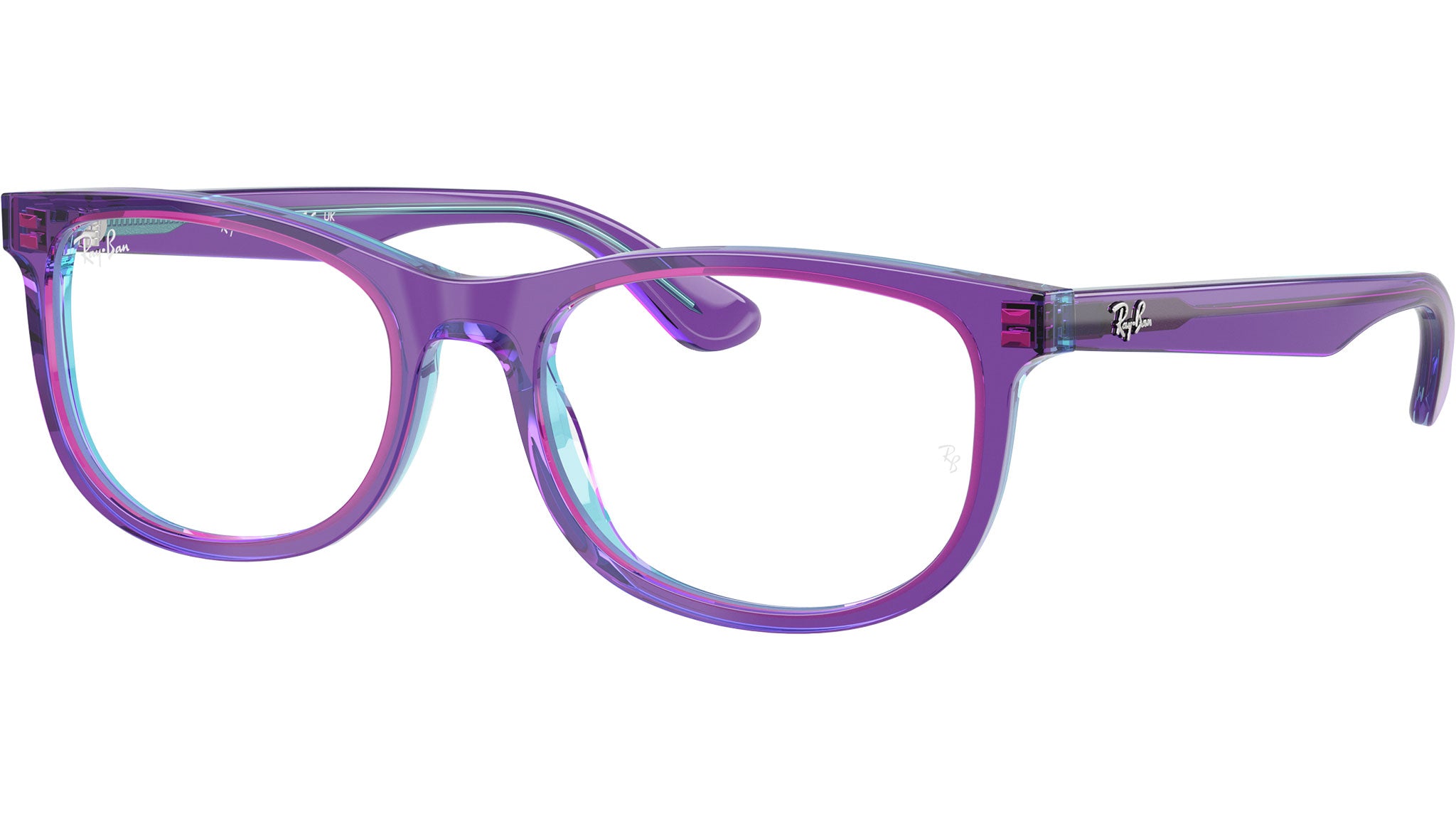 Occhiali da vista Ray-Ban Junior RY1642 3997 unisex con montatura d-frame in acetato viola e azzurro trasparenti e lenti demo. Vestibilità a ponte alto. Linea: Kids Icons. Codice modello: 0RY1642. Codice colore: 3997. Rivenditore autorizzato Ray-Ban online. Gli occhiali vengono consegnati con custodia e accessori originali e sono coperti dalla garanzia ufficiale di 12 mesi del produttore.
