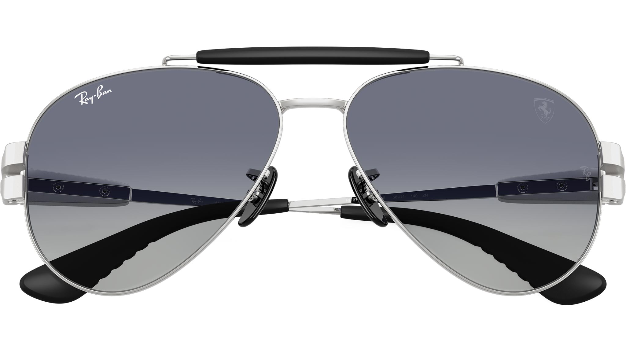 Occhiali da sole Ray-Ban 0RB3762M RB3762M F1224L unisex con montatura pantos in metallo argento e lenti in policarbonato color blu sfumato grigio. Naselli regolabili. Linea: Ferrari. Codice modello: 0RB3762M. Codice colore: F1224L. Rivenditore autorizzato Ray-Ban online. Gli occhiali vengono consegnati con custodia e accessori originali e sono coperti dalla garanzia ufficiale di 12 mesi del produttore.
