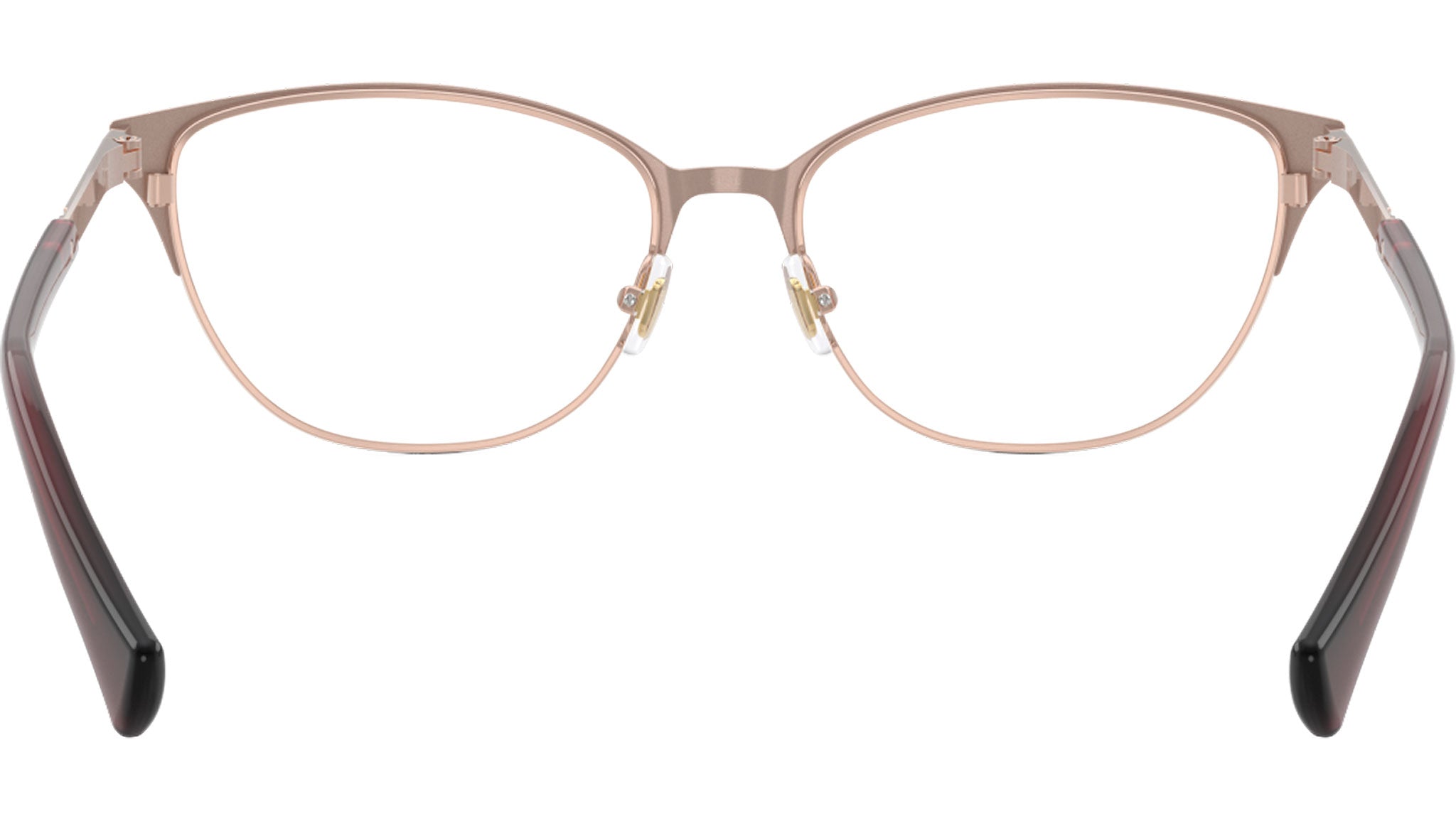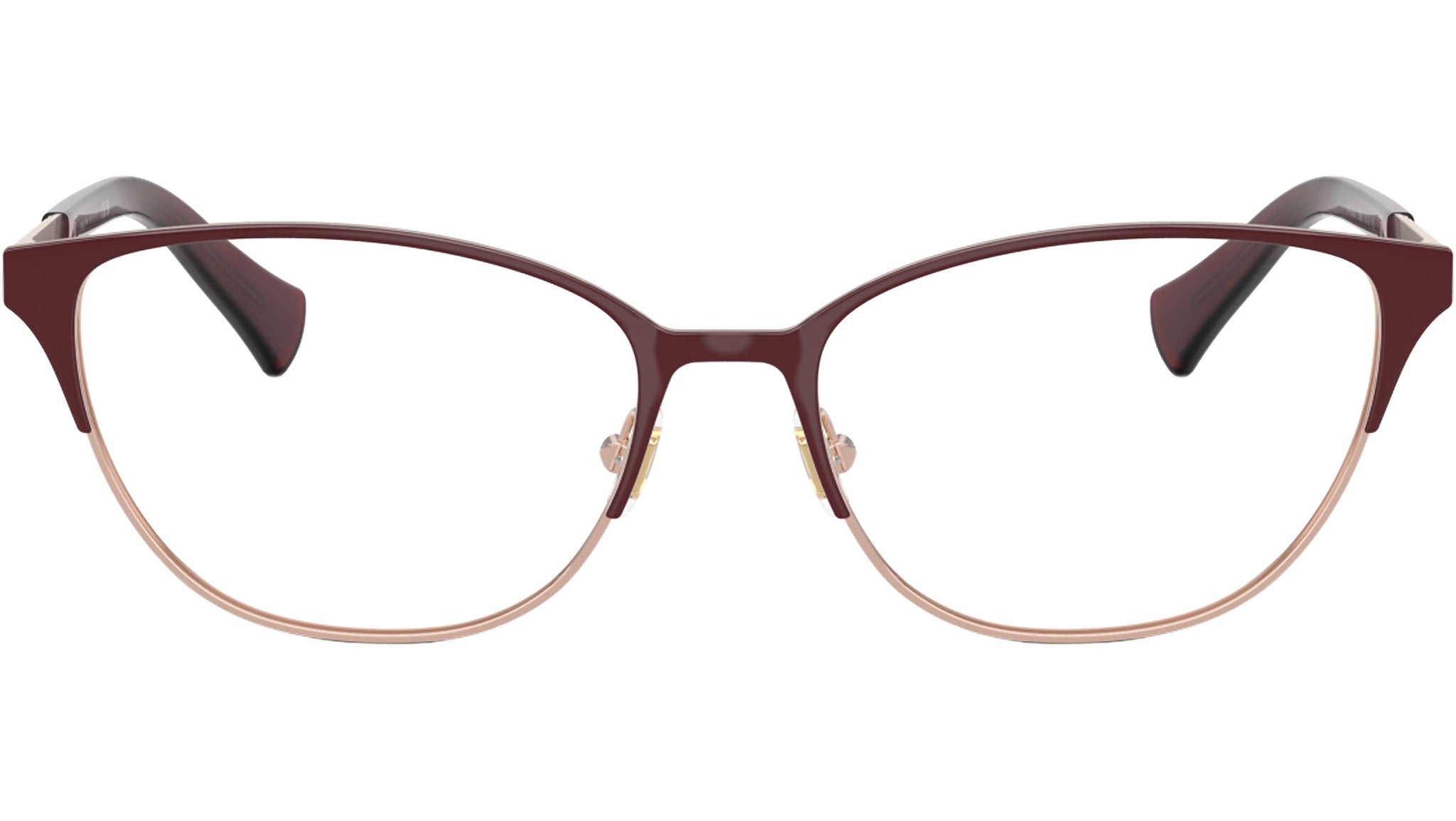 Occhiali da vista Ralph RA6055 9365 con montatura cat eye in metallo bordeaux e lenti demo. Naselli regolabili. Linea: Modern. Codice modello: 0RA6055. Codice colore: 9365. Rivenditore autorizzato Ralph online. Gli occhiali vengono consegnati con custodia e accessori originali e sono coperti dalla garanzia ufficiale di 12 mesi del produttore.