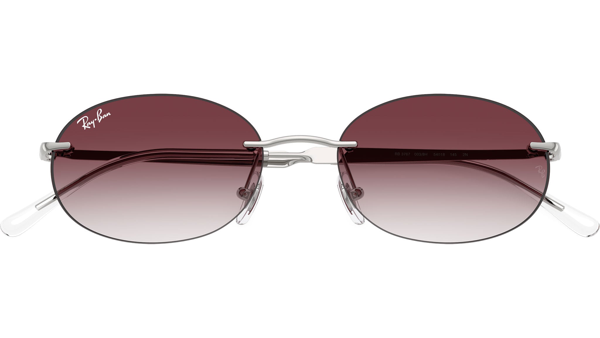 Occhiali da sole Ray-Ban RB3767 003/8H unisex con montatura ovale in metallo argento e lenti in bio poliammide color chiaro sfumato scuro viola. Naselli regolabili. Linea: Essentials. Codice modello: 0RB3767. Codice colore: 003/8H. Rivenditore autorizzato Ray-Ban online. Gli occhiali vengono consegnati con custodia e accessori originali e sono coperti dalla garanzia ufficiale di 12 mesi del produttore.