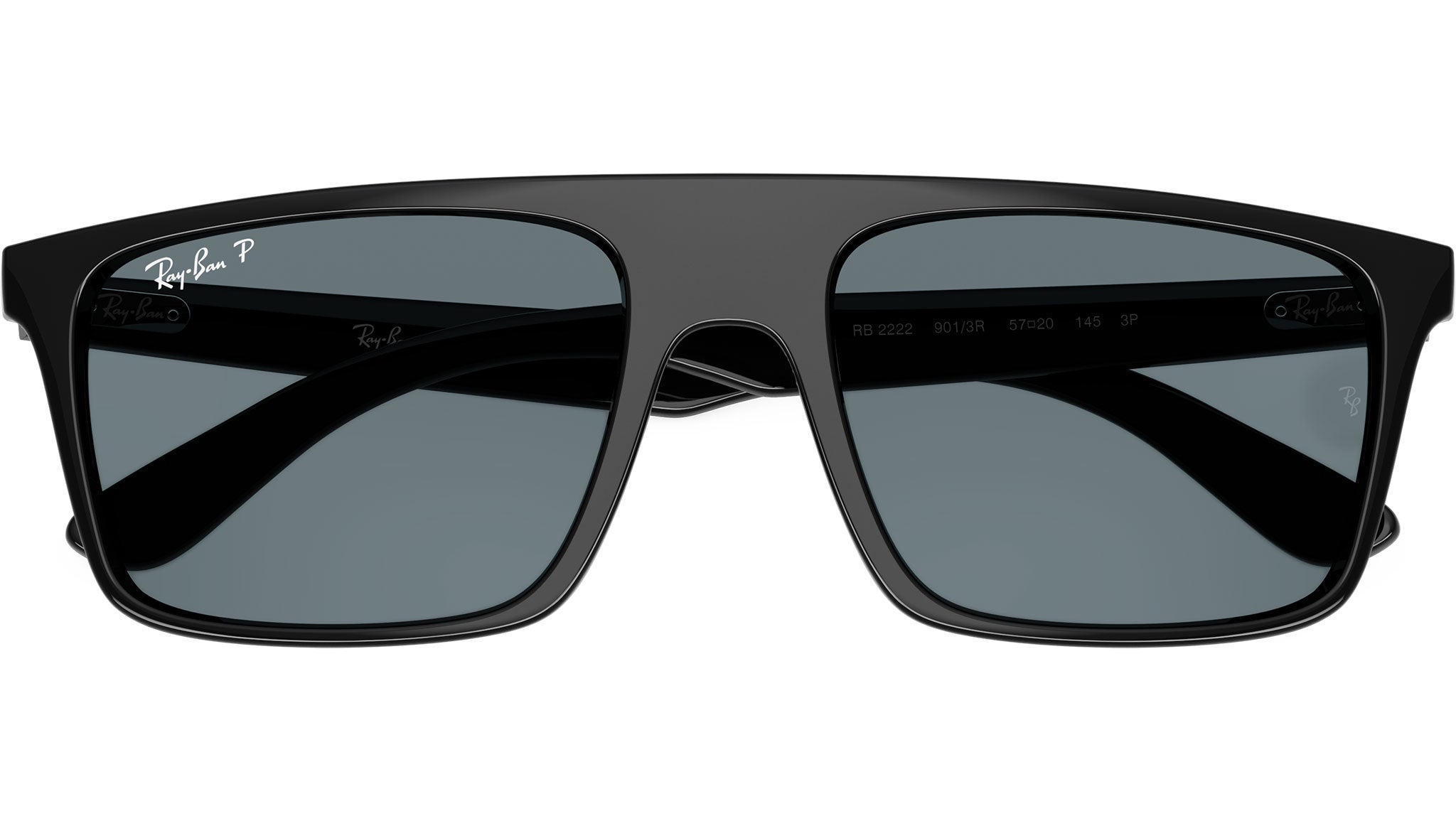 Occhiali da sole Ray-Ban RB2222 901/3R unisex con montatura squadrata in propionato nero e lenti in cristallo color blu scuro polarizzato. Vestibilità a ponte alto. Linea: Essentials. Codice modello: 0RB2222. Codice colore: 901/3R. Rivenditore autorizzato Ray-Ban online. Gli occhiali vengono consegnati con custodia e accessori originali e sono coperti dalla garanzia ufficiale di 12 mesi del produttore.