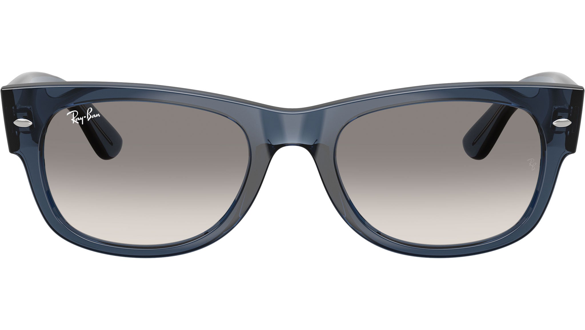Occhiali da sole Ray-Ban Mega Wayfarer II RB0832S 684532 unisex con montatura squadrata in propionato blu scuro trasparente e lenti in cristallo color grigio chiaro sfumato. Linea: Evolution. Codice modello: 0RB0832S. Codice colore: 684532. Rivenditore autorizzato Ray-Ban online. Gli occhiali vengono consegnati con custodia e accessori originali e sono coperti dalla garanzia ufficiale di 12 mesi del produttore.