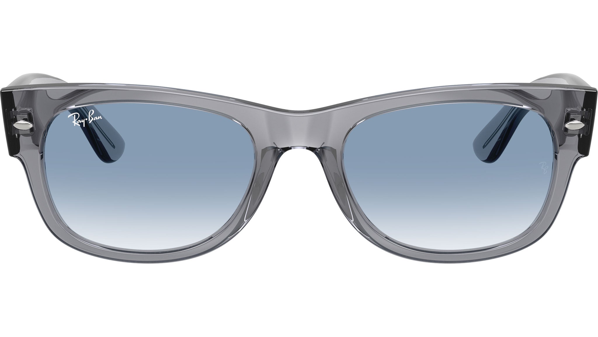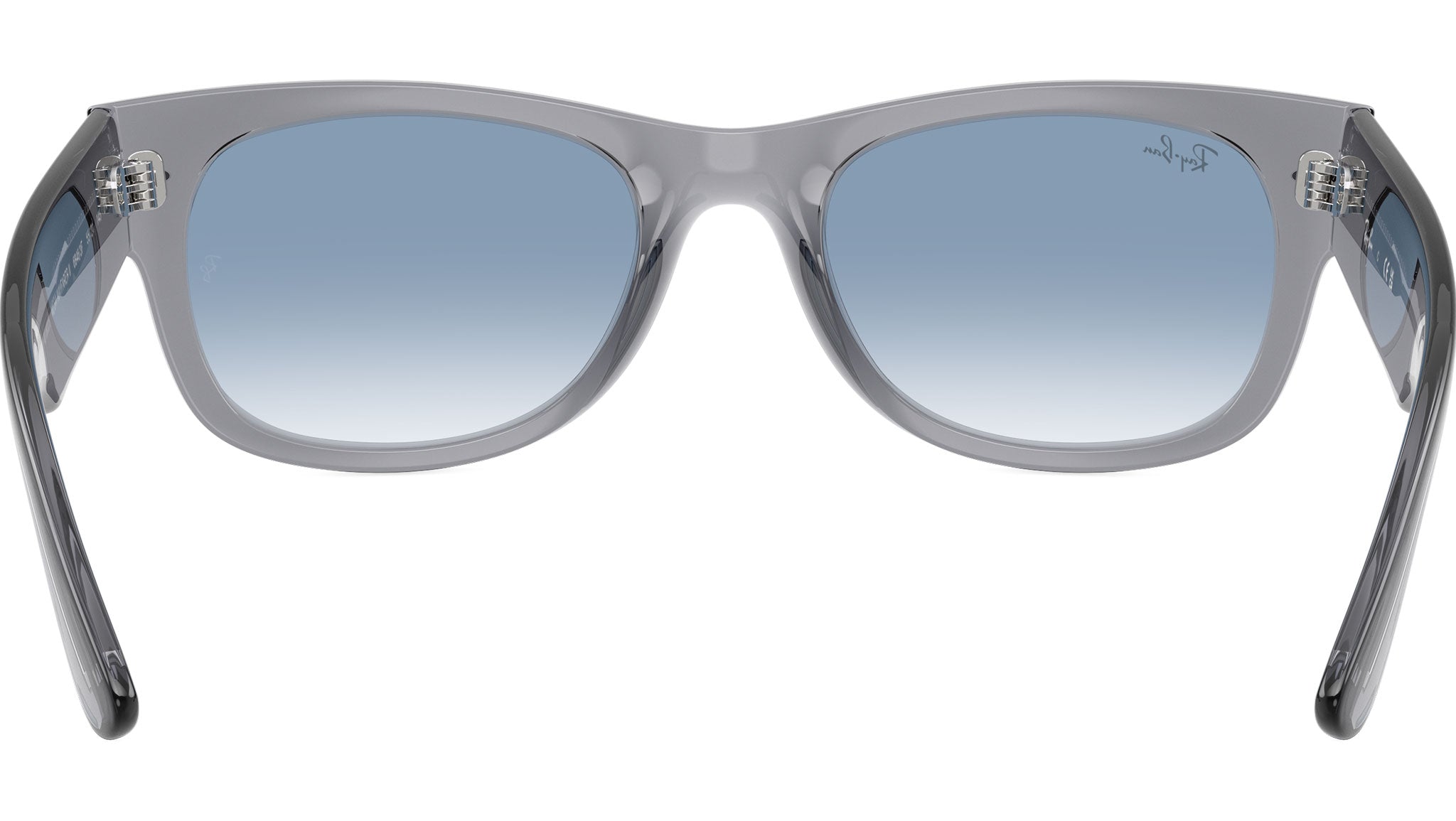 Occhiali da sole Ray-Ban Mega Wayfarer II RB0832S 68463F unisex con montatura squadrata in propionato grigio e lenti in cristallo color blu chiaro sfumato. Linea: Evolution. Codice modello: 0RB0832S. Codice colore: 68463F. Rivenditore autorizzato Ray-Ban online. Gli occhiali vengono consegnati con custodia e accessori originali e sono coperti dalla garanzia ufficiale di 12 mesi del produttore.