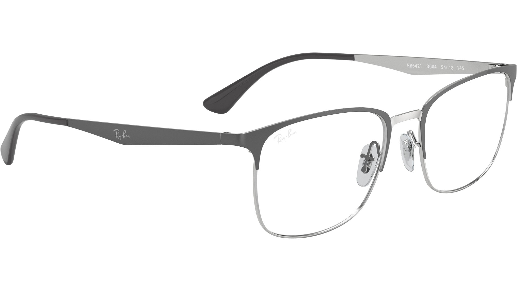 Occhiali da vista Ray-Ban RB6421 Optics RB6421 3004 unisex con montatura squadrata in metallo grigio su argento e lenti demo. Naselli regolabili. Linea: Core. Codice modello: 0RX6421. Codice colore: 3004. Rivenditore autorizzato Ray-Ban online. Gli occhiali vengono consegnati con custodia e accessori originali e sono coperti dalla garanzia ufficiale di 12 mesi del produttore.
