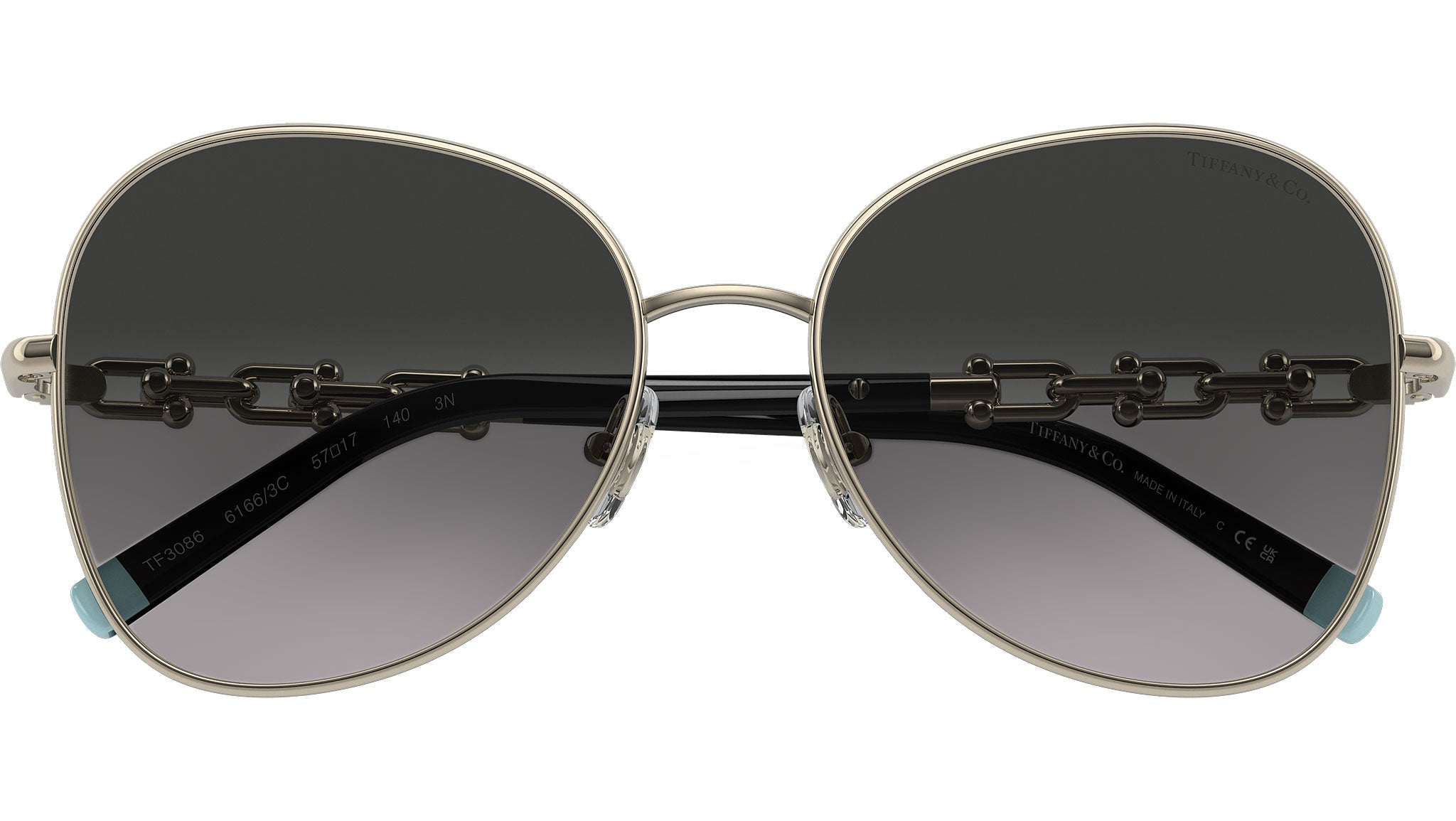 Occhiali da sole Tiffany donna modello TF3086 61663C con montatura navigator in metallo oro chiaro e lenti in poliammide grigio sfumato base 4. Naselli regolabili. Linea: Motifs. Codice Brand: 0TF3086. Codice colore: 61663C. Rivenditore autorizzato online Tiffany Eyewear. Ogni prodotto Tiffany viene consegnato con astuccio originale e accessori ed è coperto da garanzia del produttore di 12 mesi.