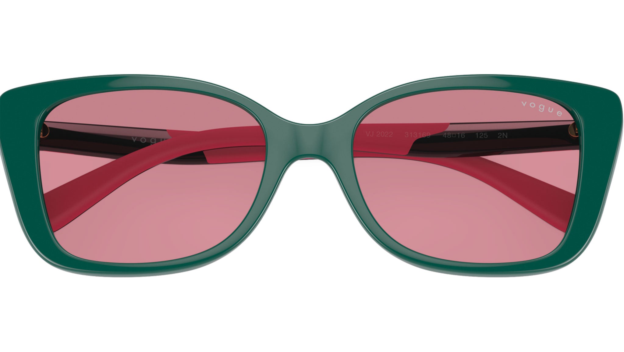 Occhiali da sole Vogue bambina modello VJ2022 313169 con montatura a farfalla in nylon verde scuro solido e lenti base 6 in bio poliammide violetto scuro. Vestibilità a ponte alto. Linea: Kids. Codice Brand: 0VJ2022. Codice colore: 313169. Rivenditore autorizzato online Vogue Kids. Ogni prodotto Vogue viene consegnato con astuccio originale e accessori ed è coperto da garanzia del produttore di 12 mesi.
