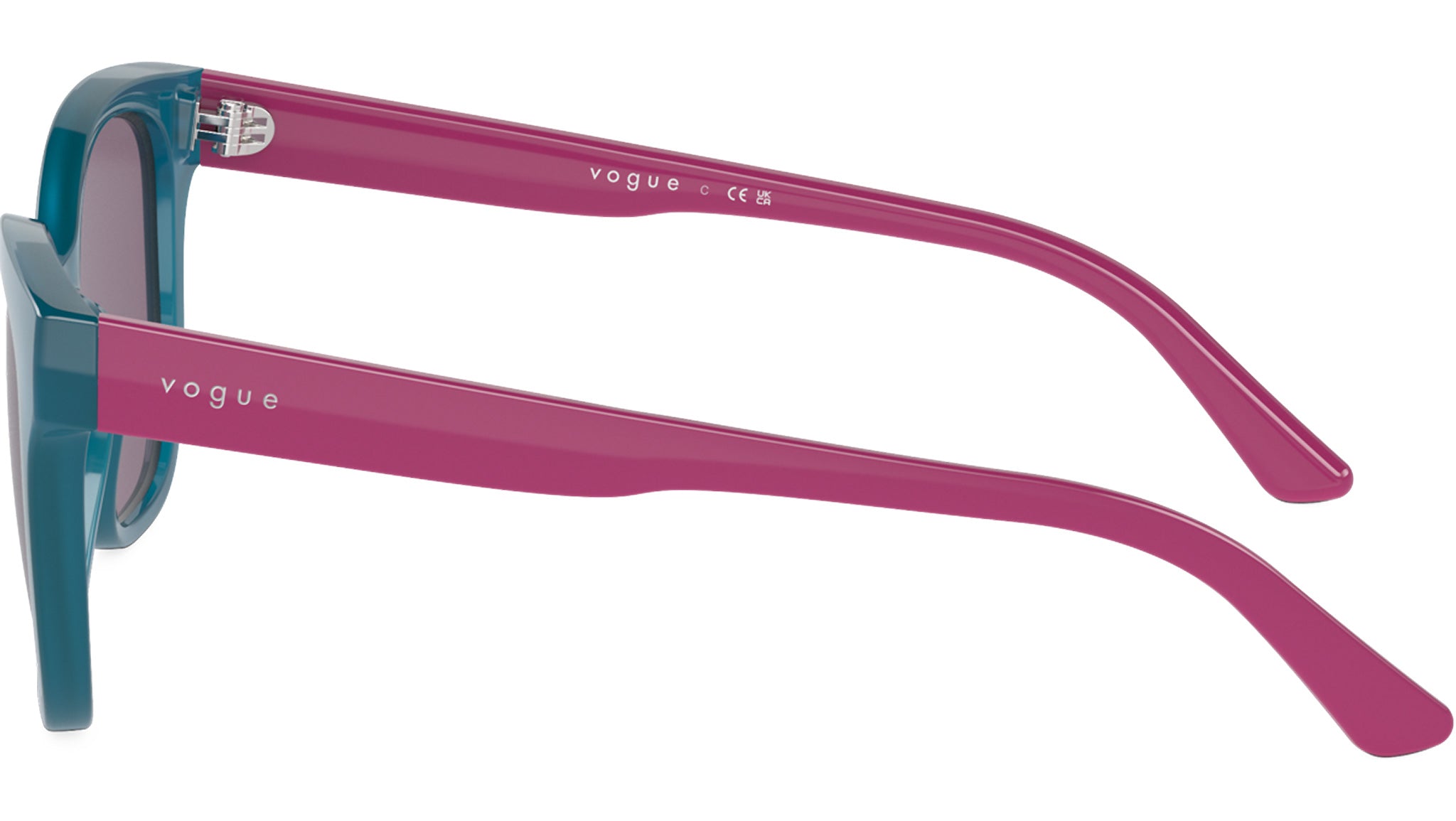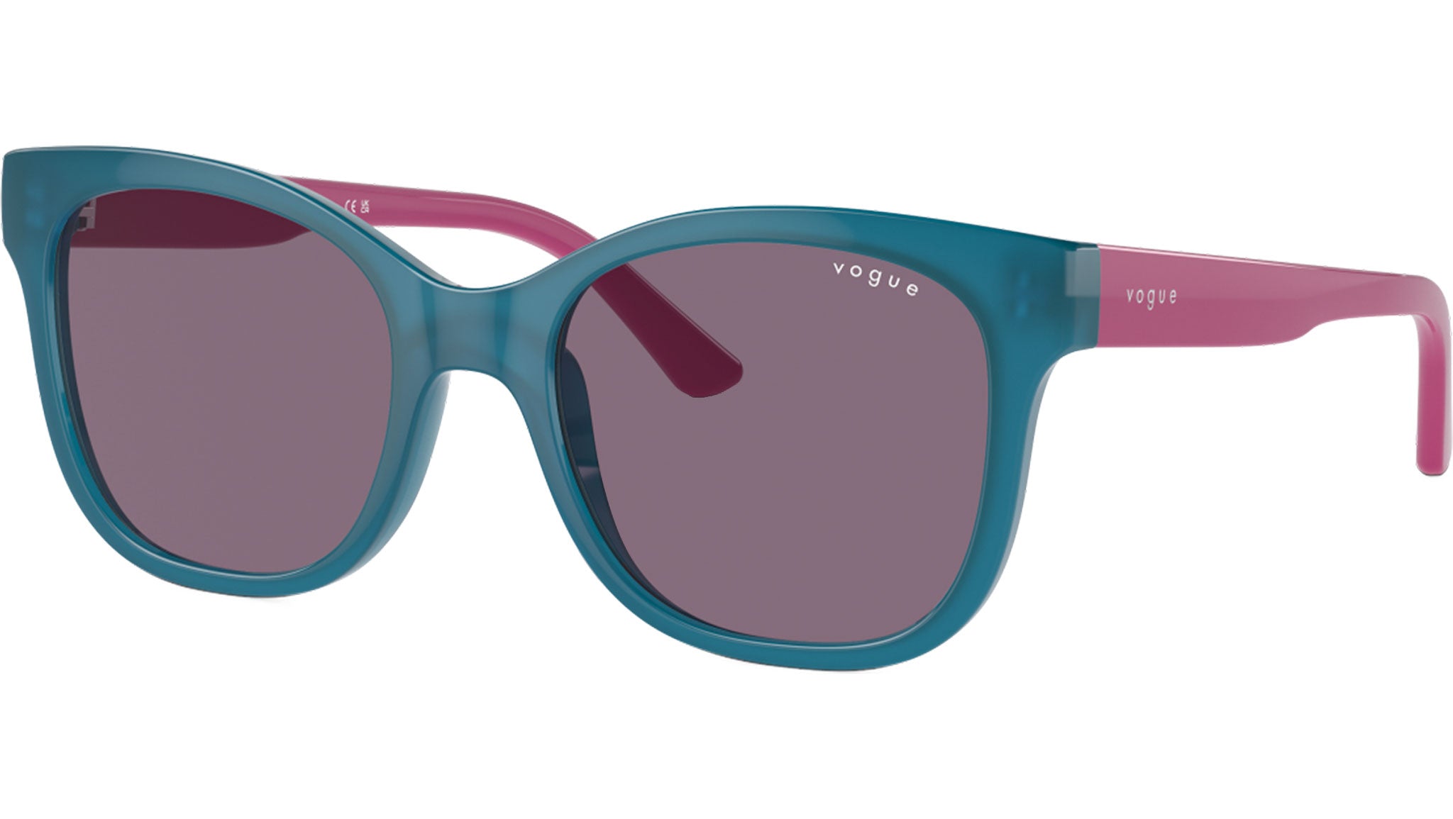 Occhiali da sole Vogue bambina modello VJ2023 31281A con montatura a farfalla in nylon blu opalino e lenti base 4 in bio poliammide violetto scuro. Vestibilità a ponte alto. Linea: Kids. Codice Brand: 0VJ2023. Codice colore: 31281A. Rivenditore autorizzato online Vogue Kids. Ogni prodotto Vogue viene consegnato con astuccio originale e accessori ed è coperto da garanzia del produttore di 12 mesi.