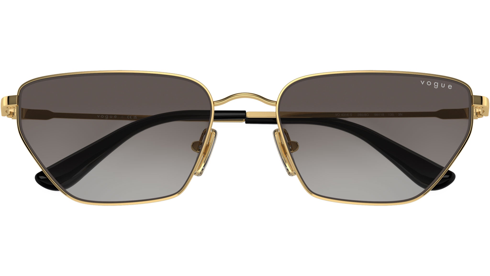 Occhiali da sole Vogue donna modello VO4316S 280/8G con montatura geometrica in metallo oro e lenti base 4 in policarbonato grigio sfumato nero. Naselli regolabili. Linea: Forerunner. Codice Brand: 0VO4316S. Codice colore: 280/8G. Rivenditore autorizzato online Vogue Eyewear. Ogni prodotto Vogue viene consegnato con astuccio originale e accessori ed è coperto da garanzia del produttore di 12 mesi.