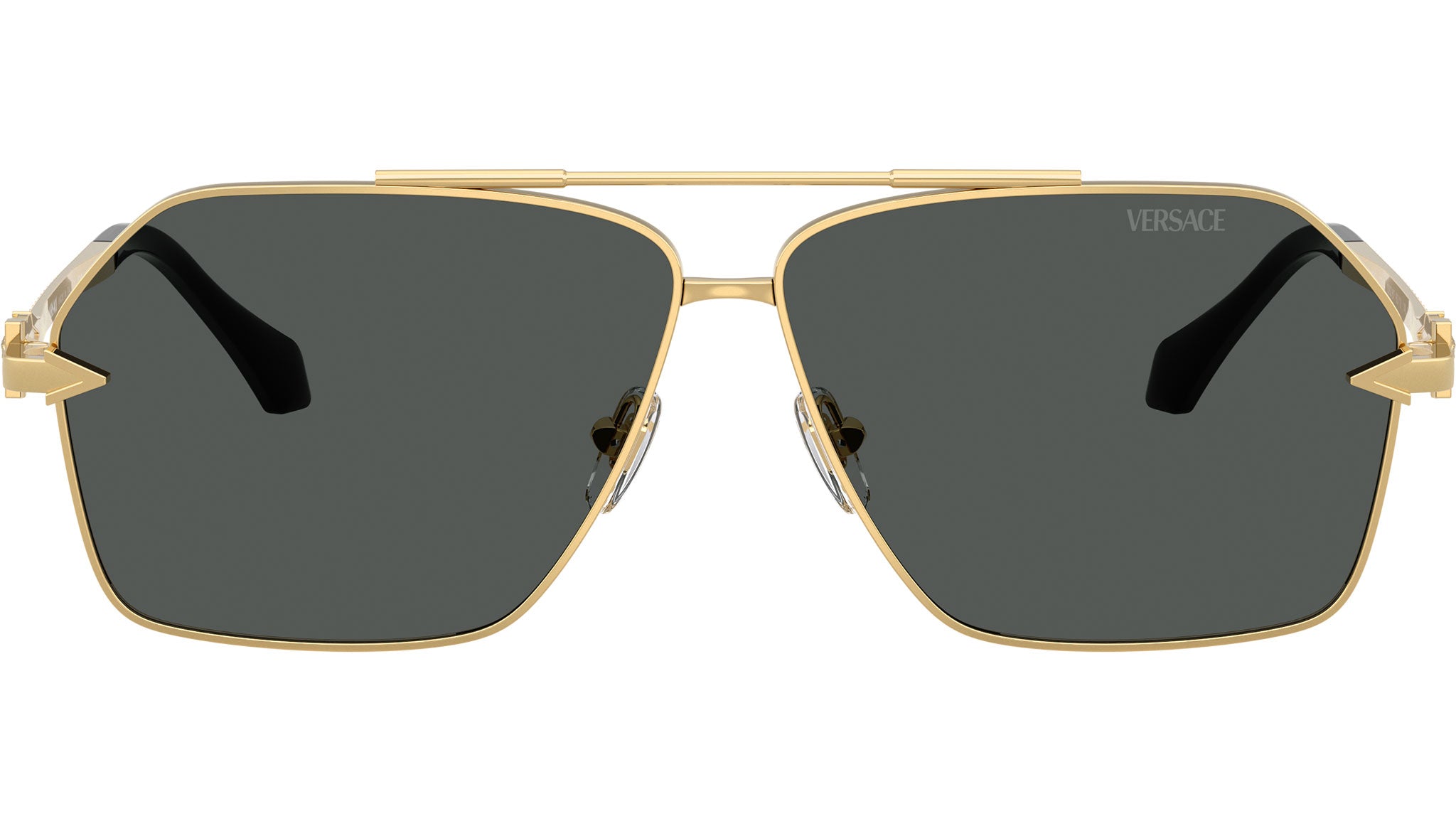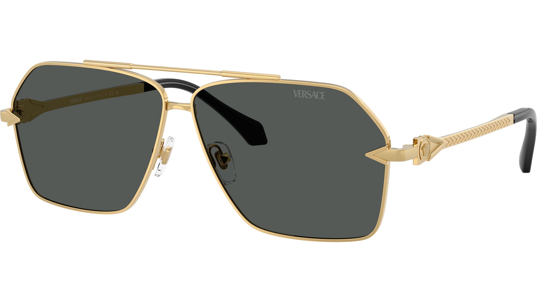Occhiali da sole Versace uomo modello VE2284 100287 con montatura squadrata in metallo oro e lenti base 2 in policarbonato grigio scuro. Naselli regolabili. Linea: Fashion ID. Codice Brand: 0VE2284. Codice colore: 100287. Rivenditore autorizzato online Versace Eyewear. Ogni prodotto Versace viene consegnato con astuccio originale e accessori ed è coperto da garanzia del produttore di 12 mesi.