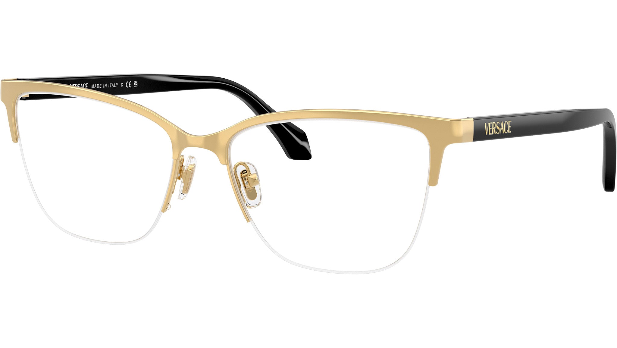 Montatura per occhiali da vista Versace donna modello VE1304 1002 con montatura cat eye in metallo oro e lenti demo base 4. Naselli regolabili. Linea: Daily Heritage. Codice Brand: 0VE1304. Codice colore: 1002. Rivenditore autorizzato online Versace Eyewear. Ogni prodotto Versace viene consegnato con astuccio originale e accessori ed è coperto da garanzia del produttore di 12 mesi.