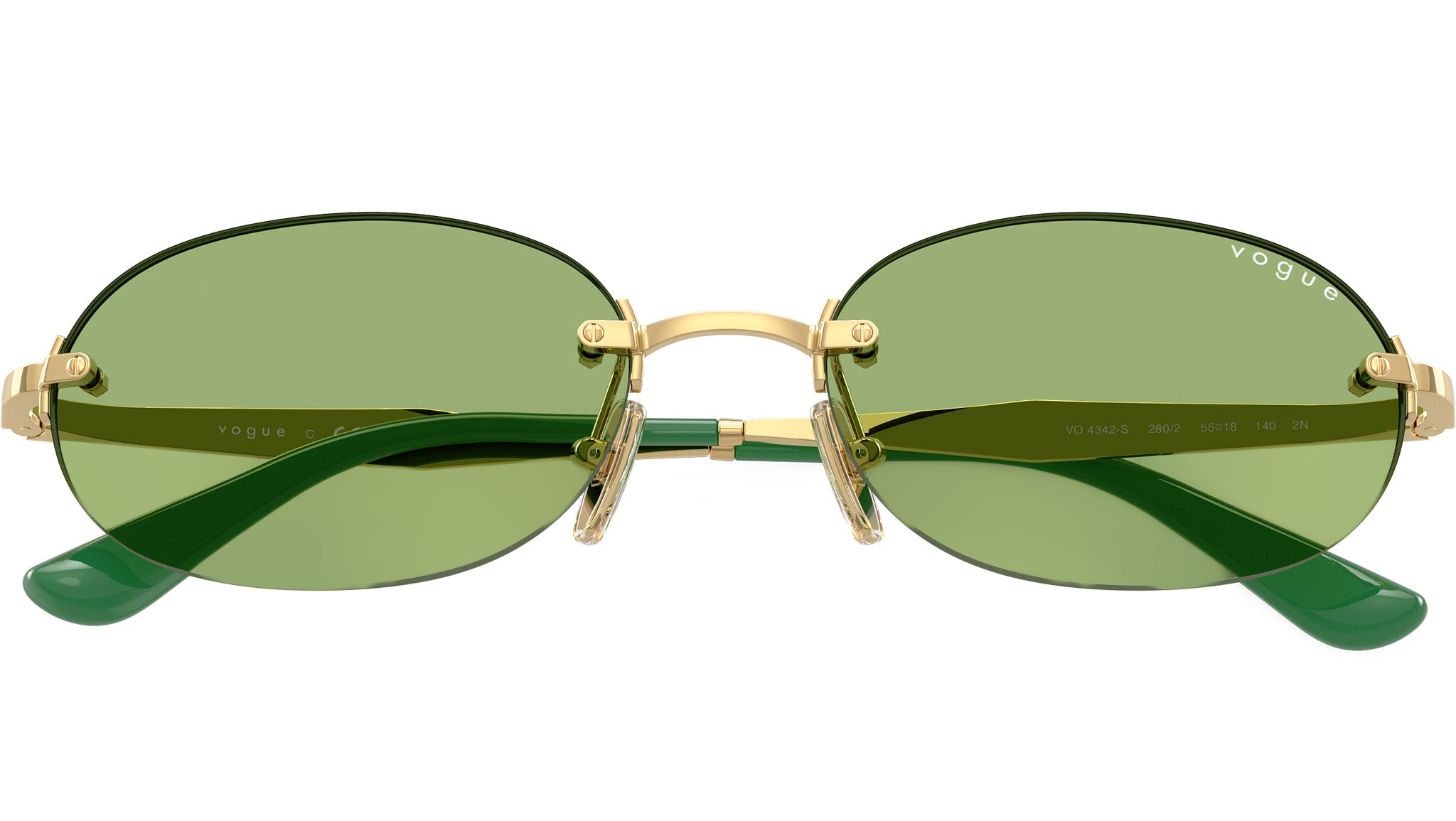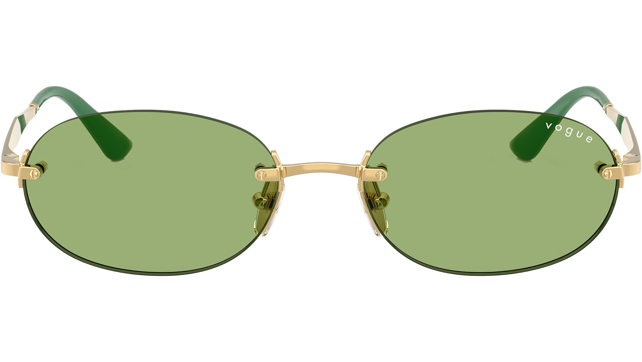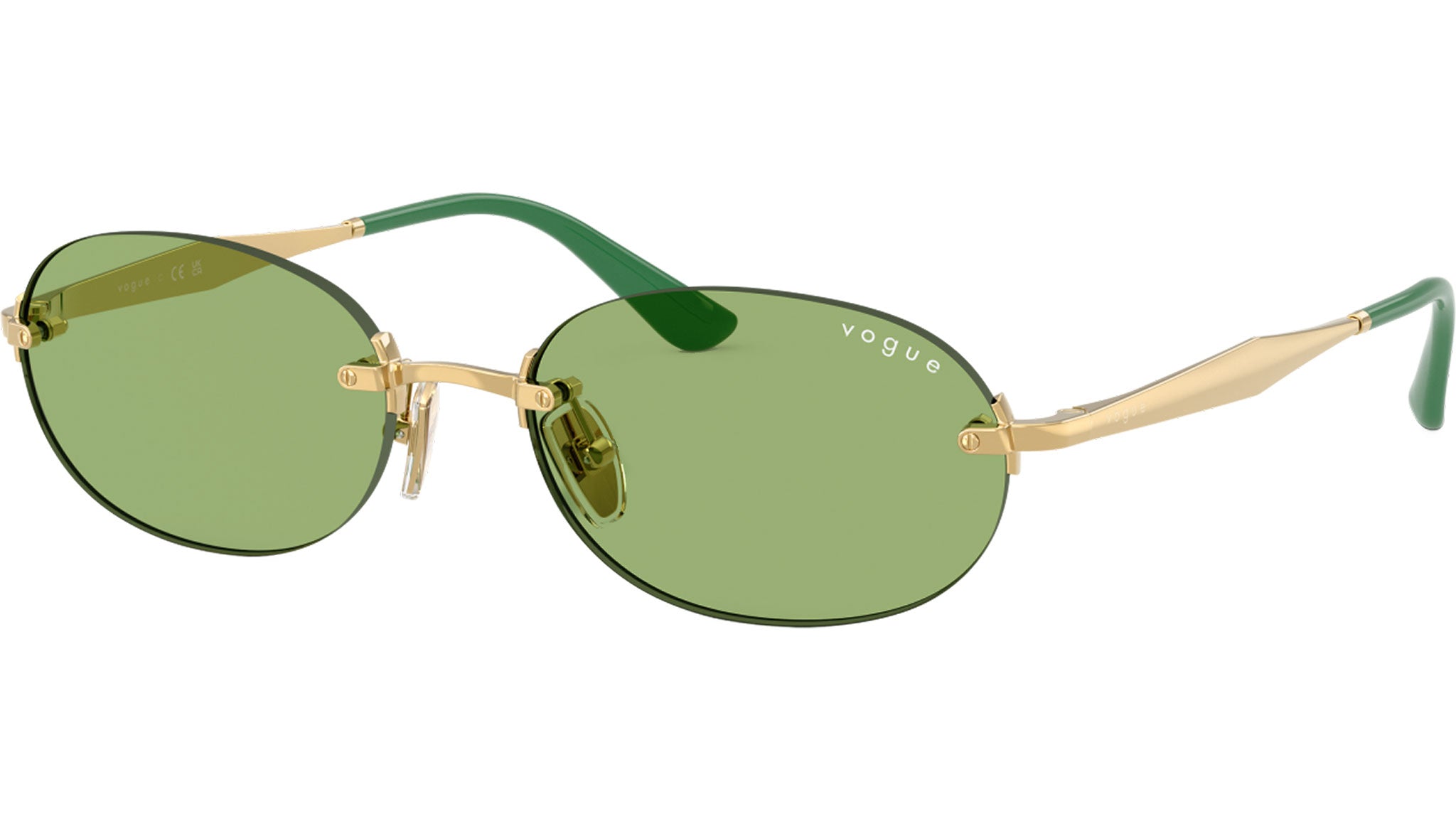 Occhiali da sole Vogue donna modello VO4342S 280/2 con montatura ovale in metallo oro e lenti base 4 in bio poliammide verde. Naselli regolabili. Linea: Evergreen. Codice Brand: 0VO4342S. Codice colore: 280/2. Rivenditore autorizzato online Vogue Eyewear. Ogni prodotto Vogue viene consegnato con astuccio originale e accessori ed è coperto da garanzia del produttore di 12 mesi.