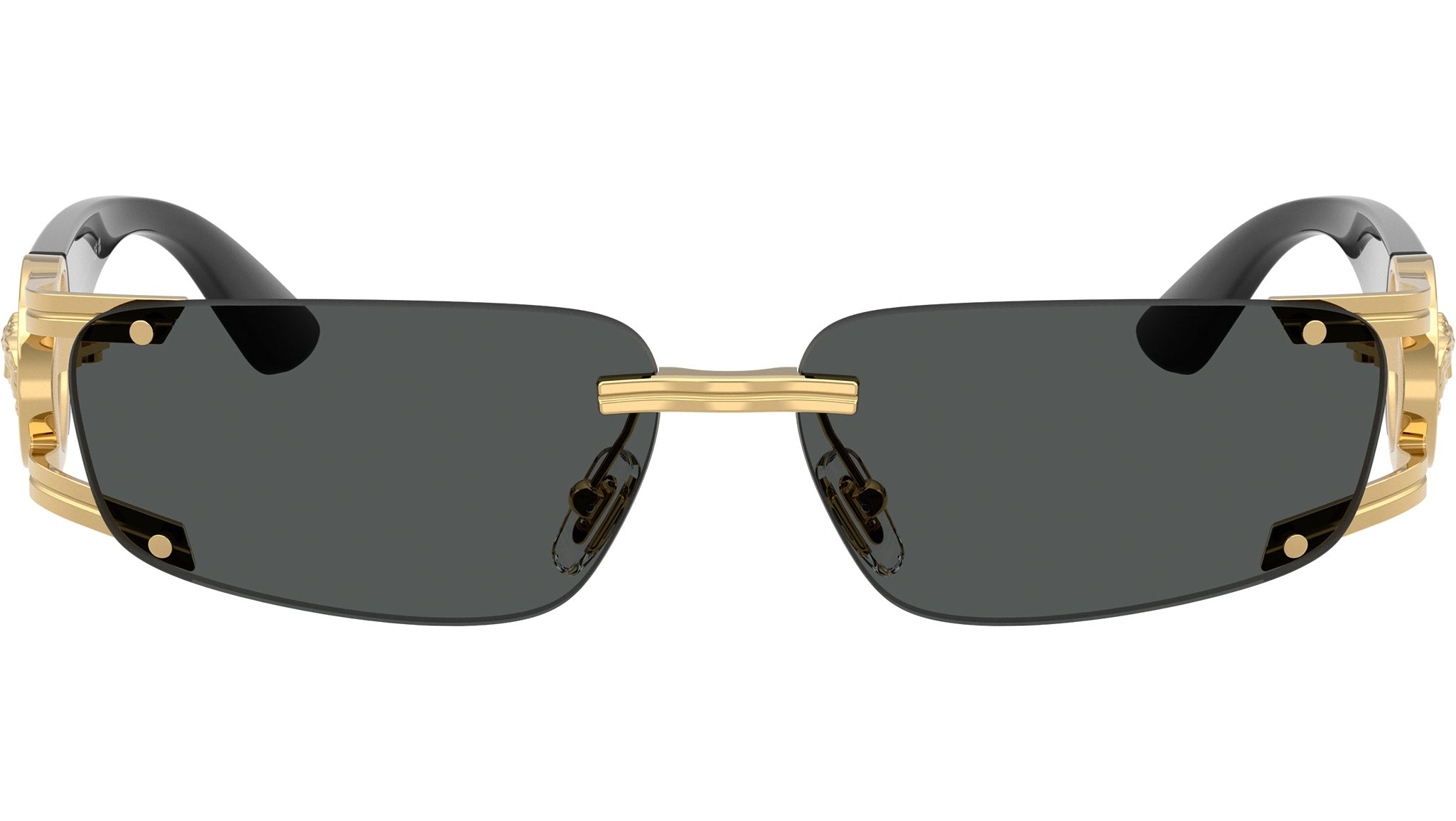 Occhiali da sole Versace uomo modello VE2291 100287 con montatura rettangolare in metallo oro e lenti base 4 in bio poliammide grigio scuro. Naselli regolabili. Linea: Fashion Id. Codice Brand: 0VE2291. Codice colore: 100287. Rivenditore autorizzato online Versace Eyewear. Ogni prodotto Versace viene consegnato con astuccio originale e accessori ed è coperto da garanzia del produttore di 12 mesi.