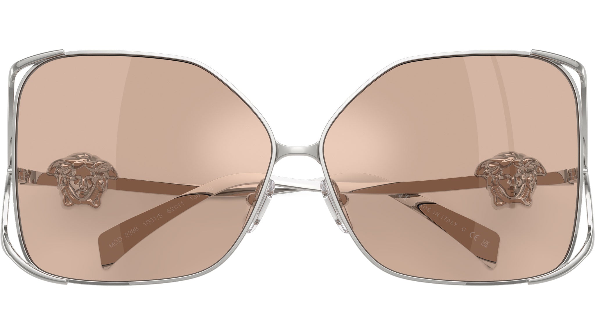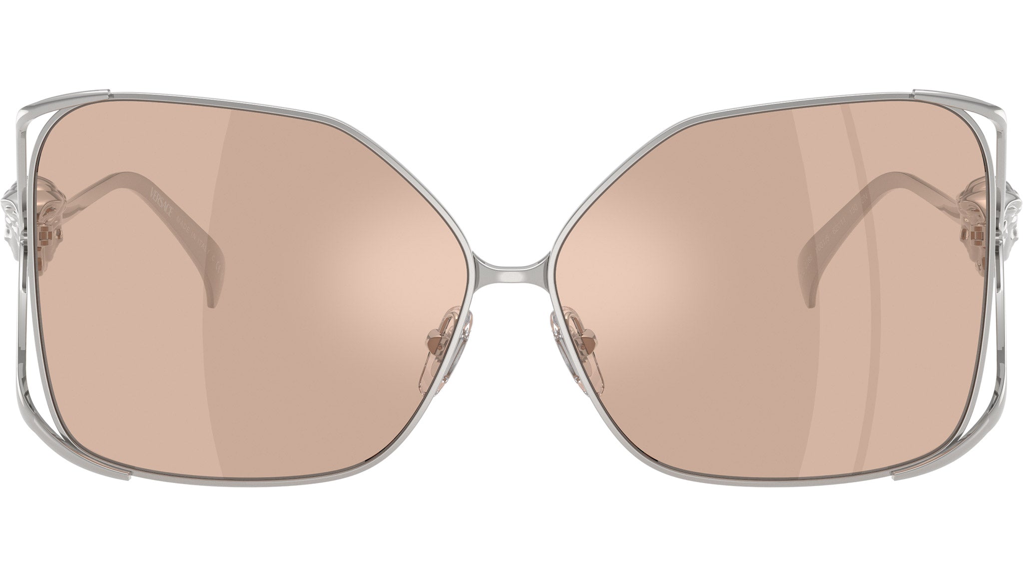 Occhiali da sole Versace donna modello VE2288 1001/5 con montatura squadrata in acciaio argento e lenti base 4 in policarbonato rosa chiaro specchio argento. Naselli regolabili. Linea: Fashion Id. Codice Brand: 0VE2288. Codice colore: 1001/5. Rivenditore autorizzato online Versace Eyewear. Ogni prodotto Versace viene consegnato con astuccio originale e accessori ed è coperto da garanzia del produttore di 12 mesi.