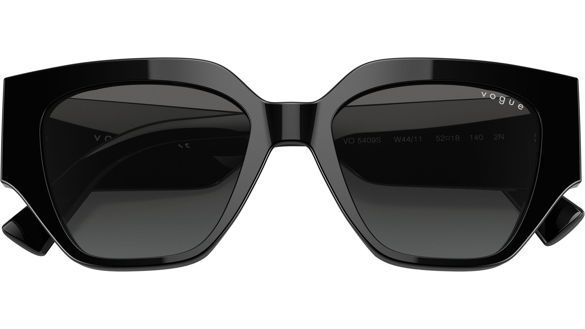 Occhiali da sole Vogue donna modello VO5409S W44/11 con montatura geometrica in acetato nero e lenti base 6 in CR-39 grigio sfumato. Vestibilità a ponte alto. Linea: Forerunner. Codice Brand: 0VO5409S. Codice colore: W44/11. Rivenditore autorizzato online Vogue Eyewear. Ogni prodotto Vogue viene consegnato con astuccio originale e accessori ed è coperto da garanzia del produttore di 12 mesi.