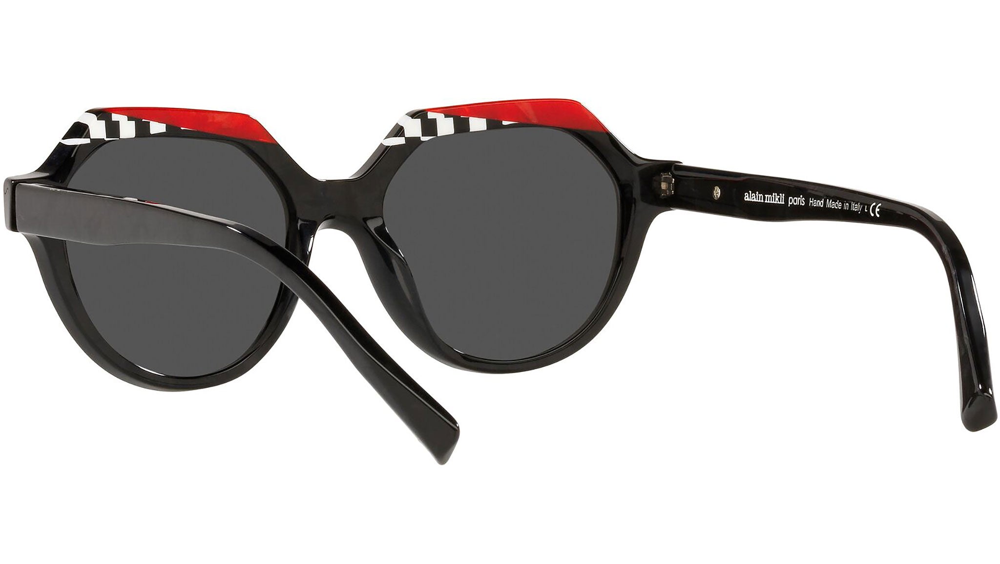 Occhiali da sole Alain Mikli modello A05067 codice colore 001/87, variante colore nero Mikli e scacchiera con lenti color grigio. Alain Mikli è stato il primo marchio a sostenere l’idea di occhiale come accessorio. Dalla fusione di arte e moda nascono montature da sempre sinonimo di unicità e provocazione, contraddistinte per il design originale e le combinazioni di colori esclusive.