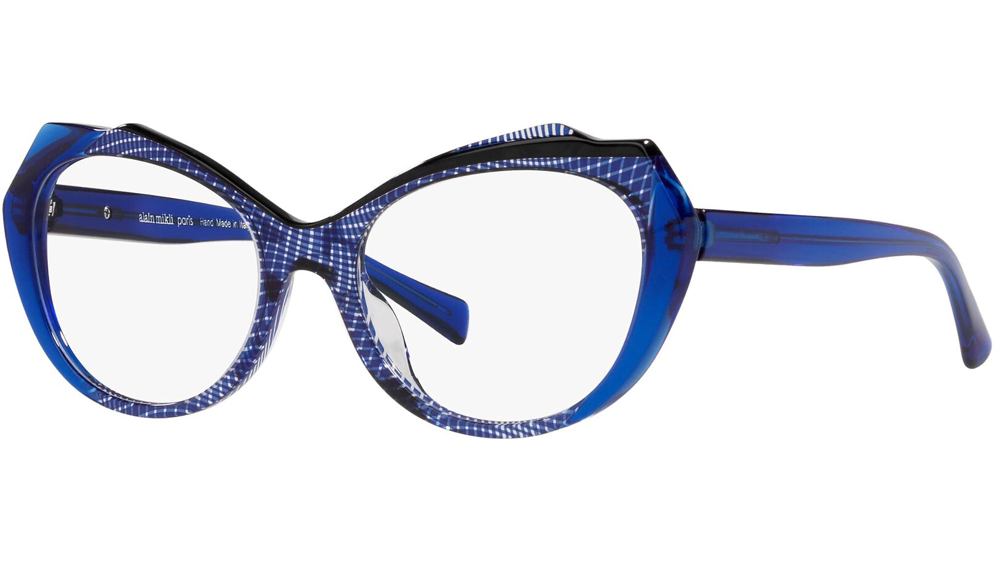 Occhiali da vista Alain Mikli modello A03136 codice colore 002, variante colore blu crystal e nero Mikli. Alain Mikli è stato il primo marchio a sostenere l’idea di occhiale come accessorio. Dalla fusione di arte e moda nascono montature da sempre sinonimo di unicità e provocazione, contraddistinte per il design originale e le combinazioni di colori esclusive.