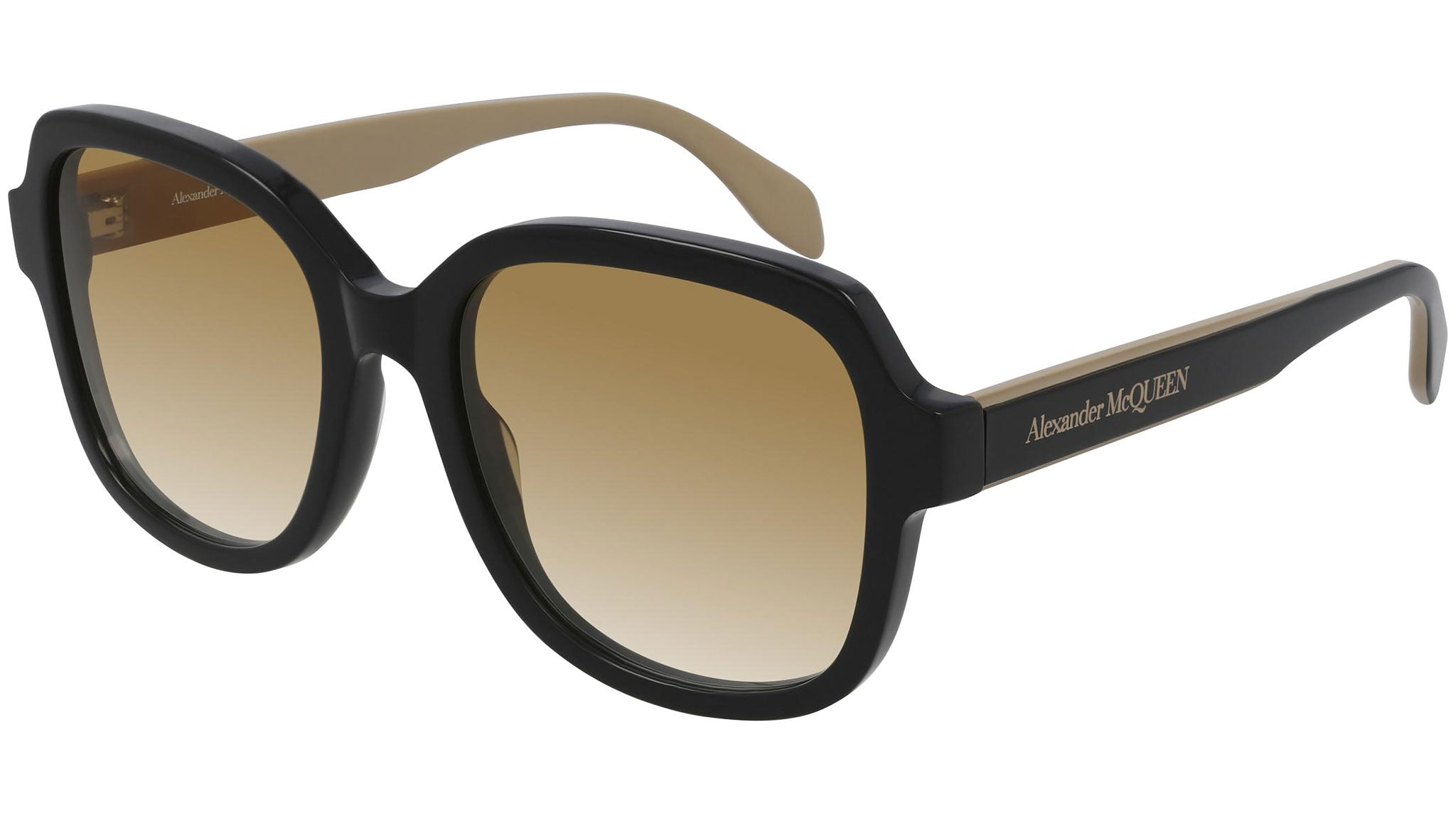 Occhiali da sole Alexander McQueen linea Romance modello AM0300S 004, variante colore nero lucido con lenti color senape sfumato. Sinonimo di fashion irriverente e senza inibizioni, i modelli Alexander McQueen Eyewear rappresentano la pura giustapposizione tra elementi contrastanti, declinata in modelli da passerella dal segno unico, stimolante e moderno.
