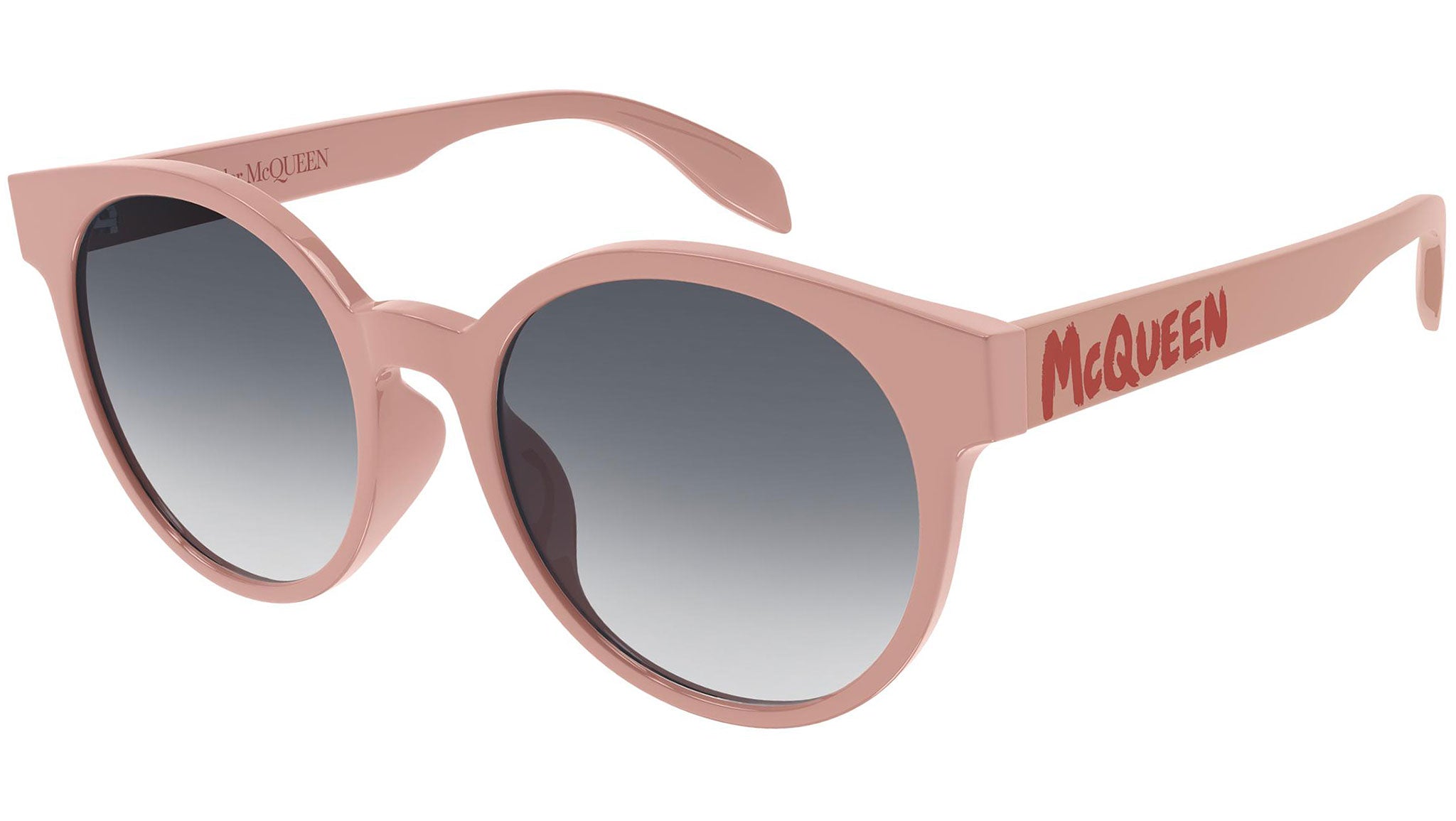Occhiali da sole Alexander McQueen linea Casual Lines modello 0349SA, variante colore 003 rosa tinta unita lucido con lenti color grigio sfumato.