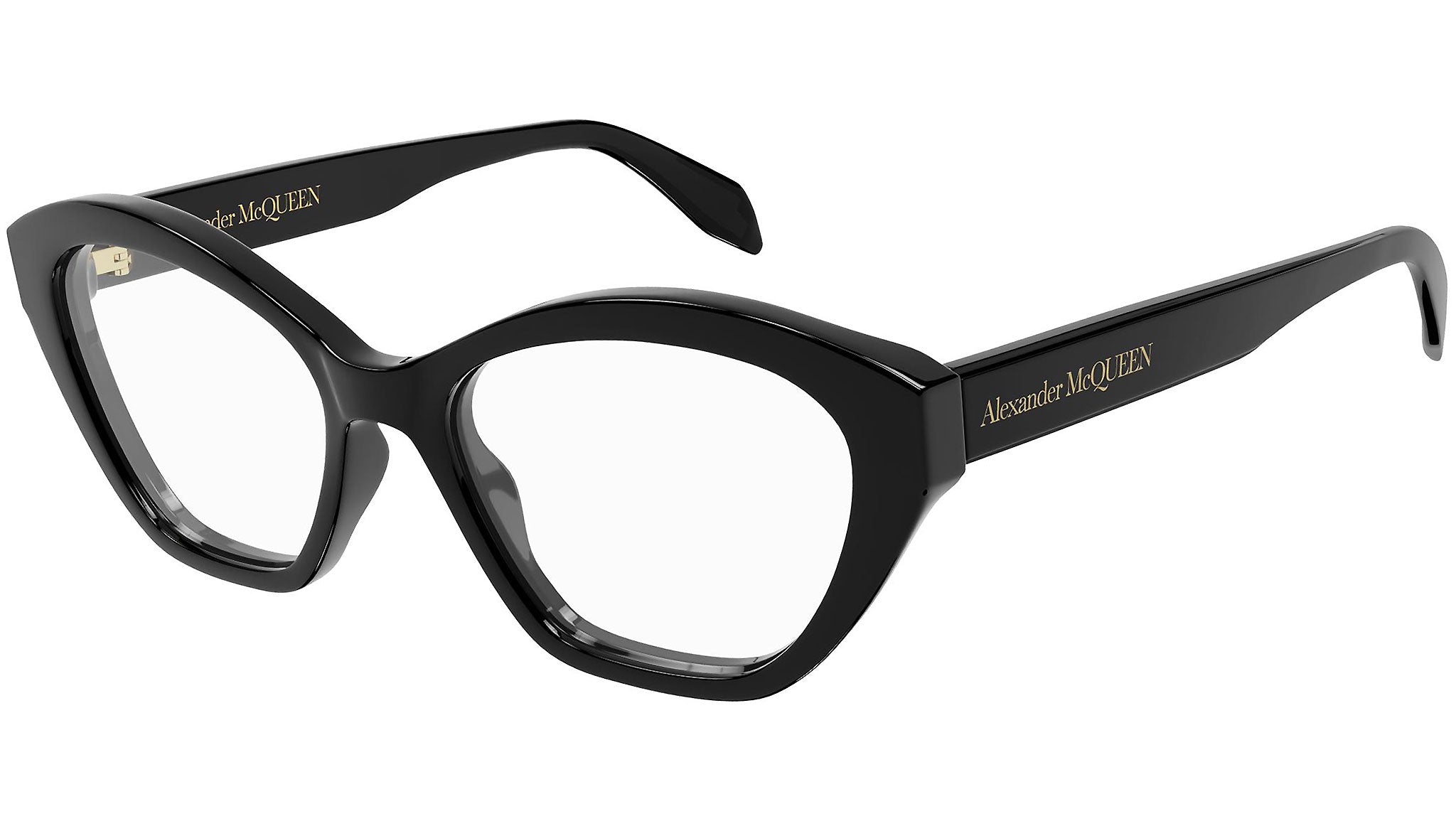 Occhiali da vista Alexander McQueen linea Casual Lines modello 0360O, variante colore 001 nero lucido con astine color nero.