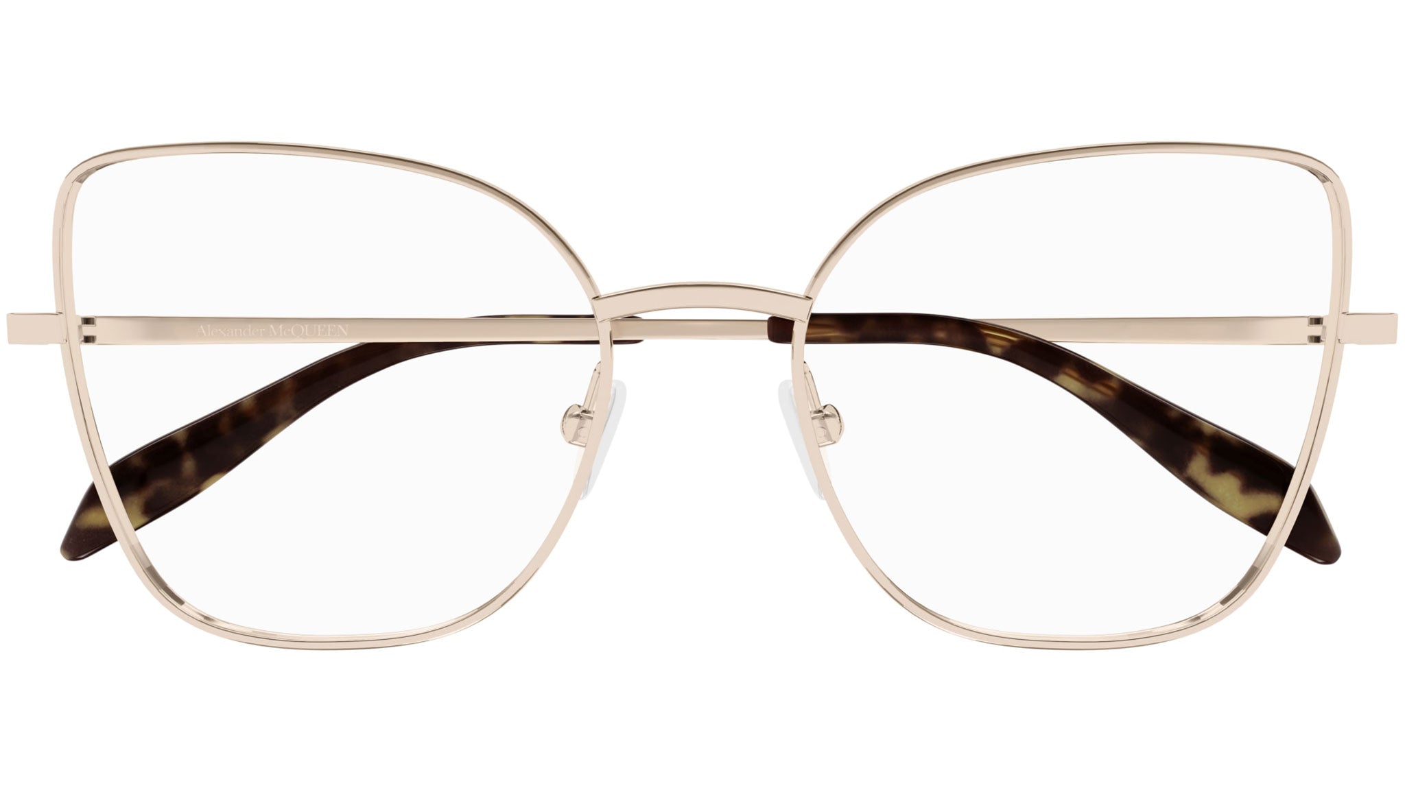 Occhiali da vista Alexander McQueen linea Icons modello AM0416O variante colore 003 oro rosa lucido con astine color oro.