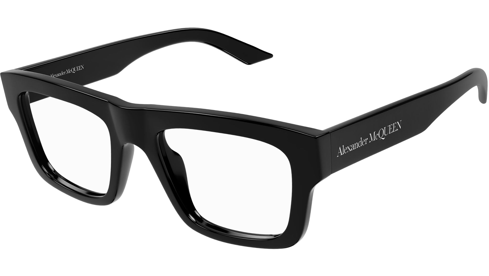 Occhiali da vista Alexander McQueen Casual Lines modello AM0452O rectangle in acetato riciclato codice colore 001 nero lucido tinta unita con aste nero e lenti demo.