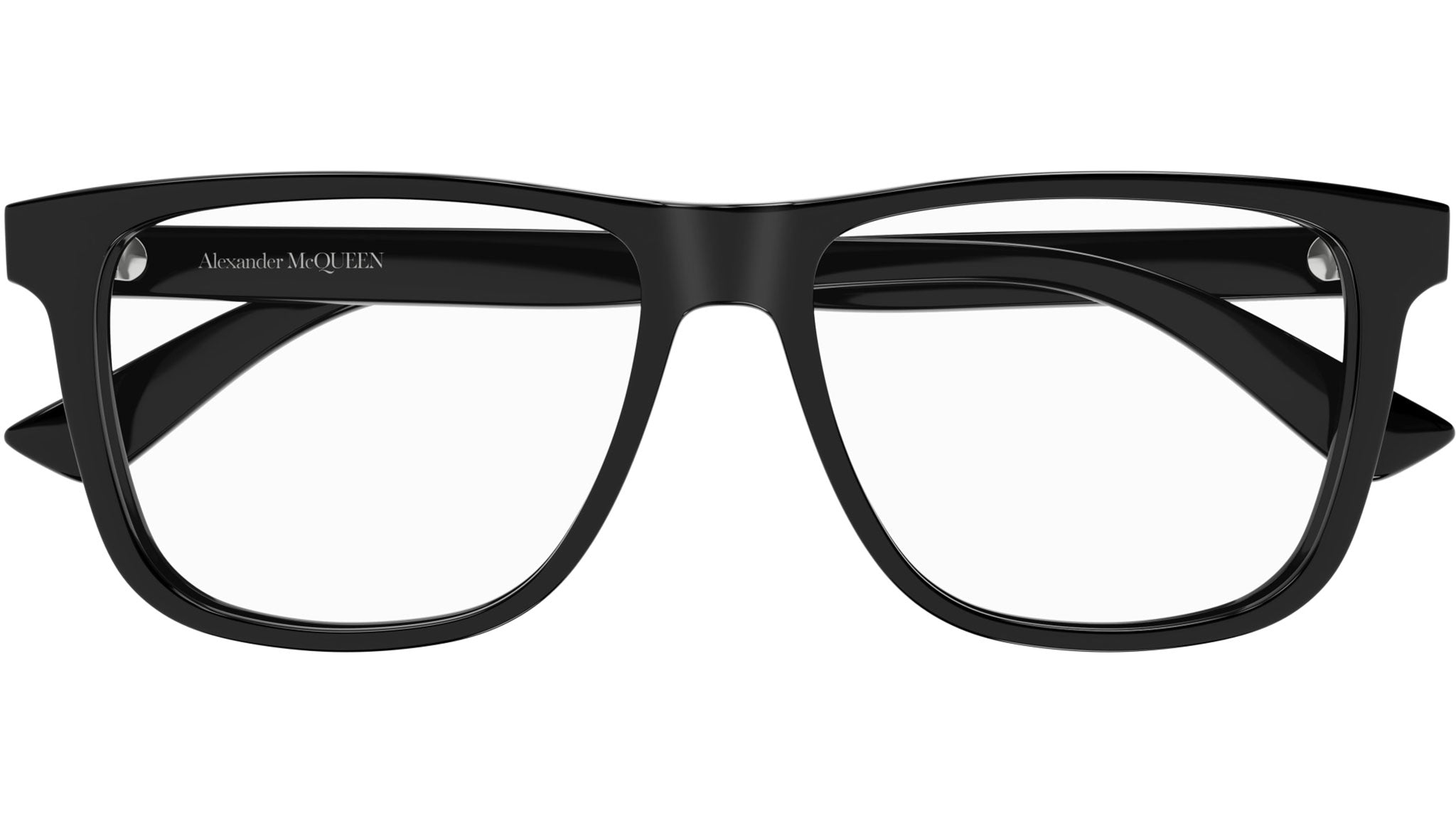 Occhiali da vista Alexander McQueen Casual Lines modello AM0463O aviator in acetato riciclato codice colore 001 nero lucido tinta unita con aste nero e lenti demo.