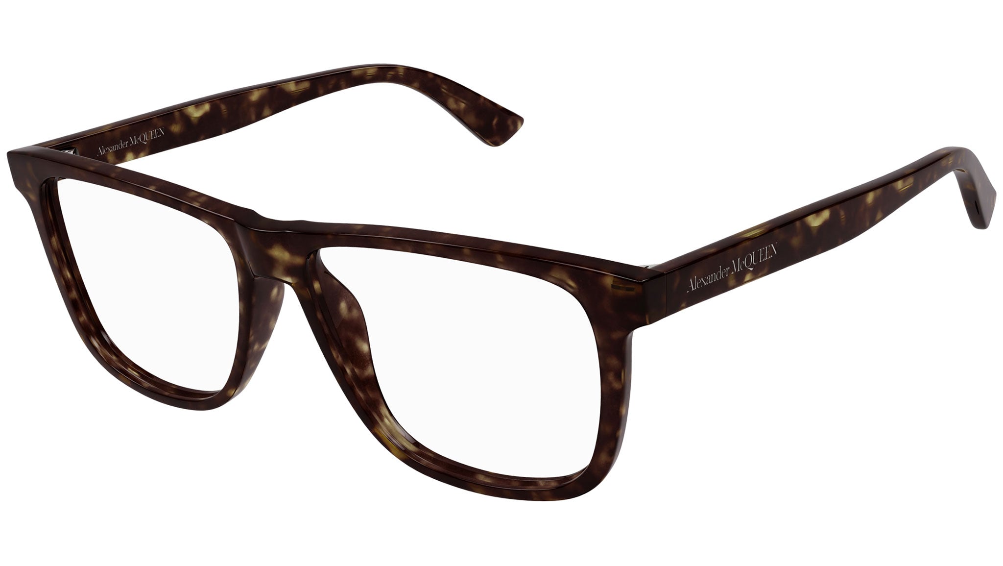 Occhiali da vista Alexander McQueen Casual Lines modello AM0463O aviator in acetato riciclato codice colore 002 tartaruga scuro lucido con aste tartaruga e lenti demo.