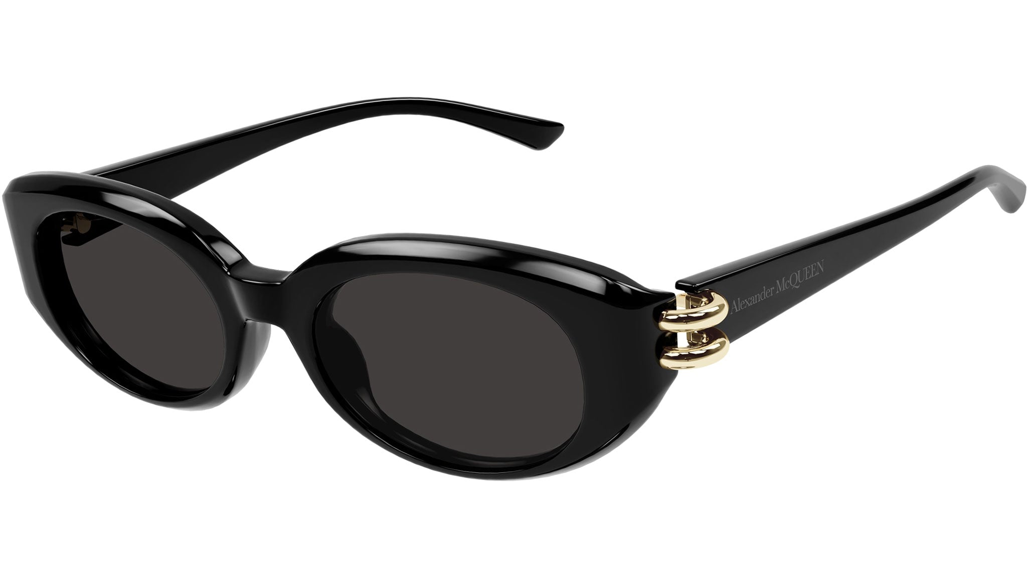 Occhiali da sole Alexander McQueen Icons modello AM0469S in acetato riciclato panto, codice colore 001 nero lucido tinta unita con aste nero e lenti color grigio tinta unita. Rivenditore autorizzato Alexander McQueen online. Gli occhiali vengono consegnati con custodia e accessori originali e sono coperti dalla garanzia ufficiale di 12 mesi del produttore.