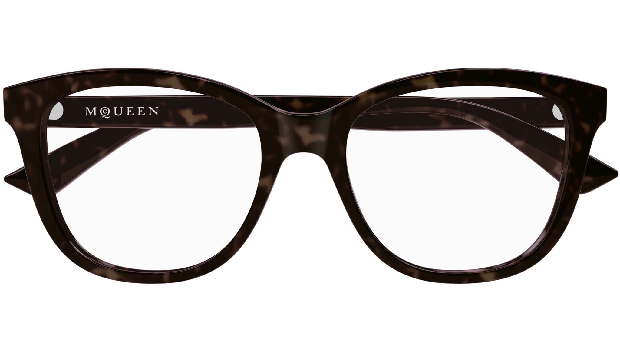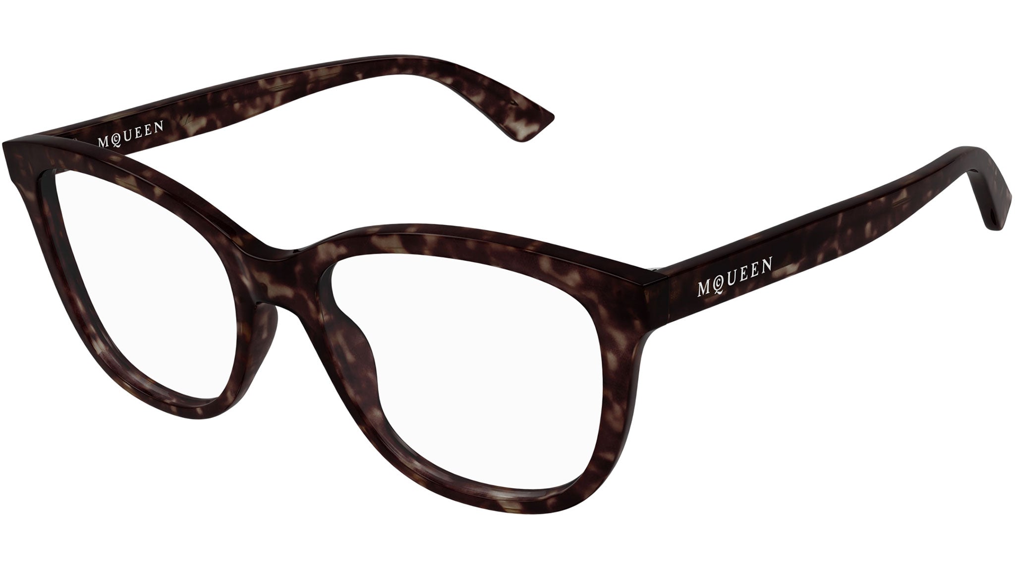 Occhiali da vista Alexander McQueen Casual Lines modello AM0487O in acetato riciclato a gatto codice colore 002 tartaruga scuro lucido con aste tartaruga e lenti demo. Rivenditore autorizzato Alexander McQueen online. Gli occhiali vengono consegnati con custodia e accessori originali e sono coperti dalla garanzia ufficiale di 12 mesi del produttore.