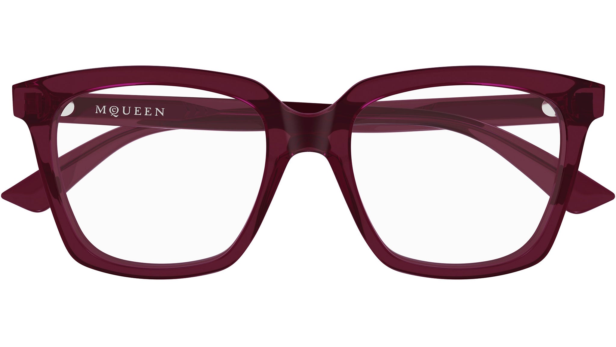 Occhiali da vista Alexander McQueen Logo modello AM0513O in acetato riciclato cat eye codice colore 003 borgogna trasparente lucido con aste bordeaux e lenti demo. Rivenditore autorizzato Alexander McQueen online. Gli occhiali vengono consegnati con custodia e accessori originali e sono coperti dalla garanzia ufficiale di 12 mesi del produttore.
