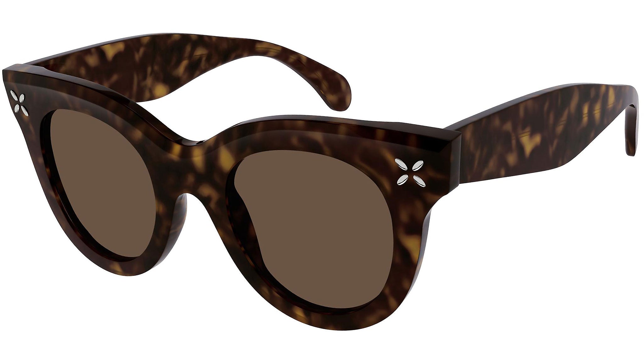 Occhiali da sole Azzedine Alaïa linea Embellishments modello 0055S, variante colore 002 tartaruga scuro lucido con lenti color marrone tinta unita.
