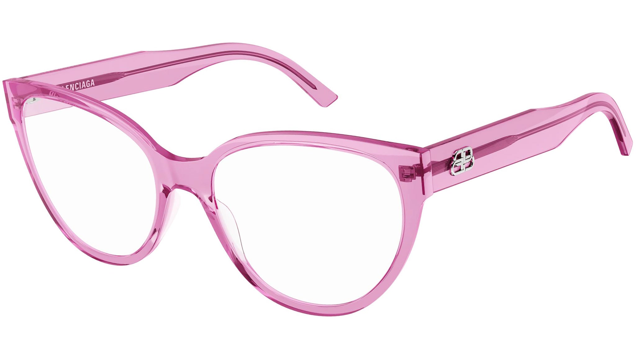 Occhiali da vista Balenciaga linea Everyday modello BB0064O 007, variante colore rosa trasparente lucido con astine color rosa.
