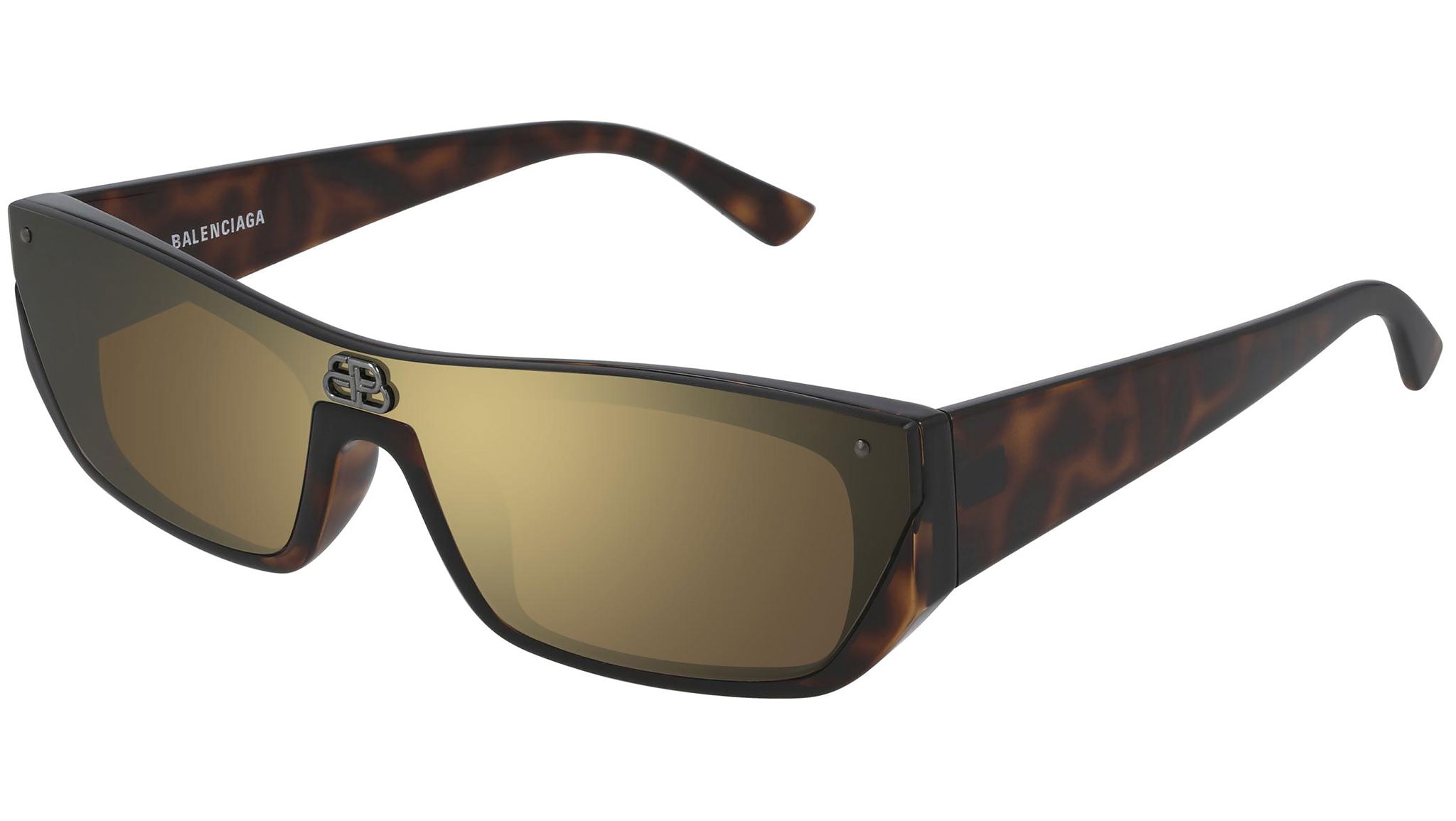 Occhiali da sole Balenciaga linea Extreme modello BB0080S 004, variante colore avana scuro lucido con logo metal rutenio con lenti color marrone + bronzo a specchio mask.