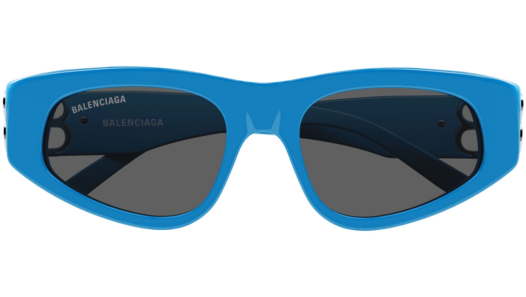 Occhiali da sole Balenciaga linea Everyday BB0095S codice colore 011 con montatura azzurro tinta unita lucido e lenti color grigio tinta unita.