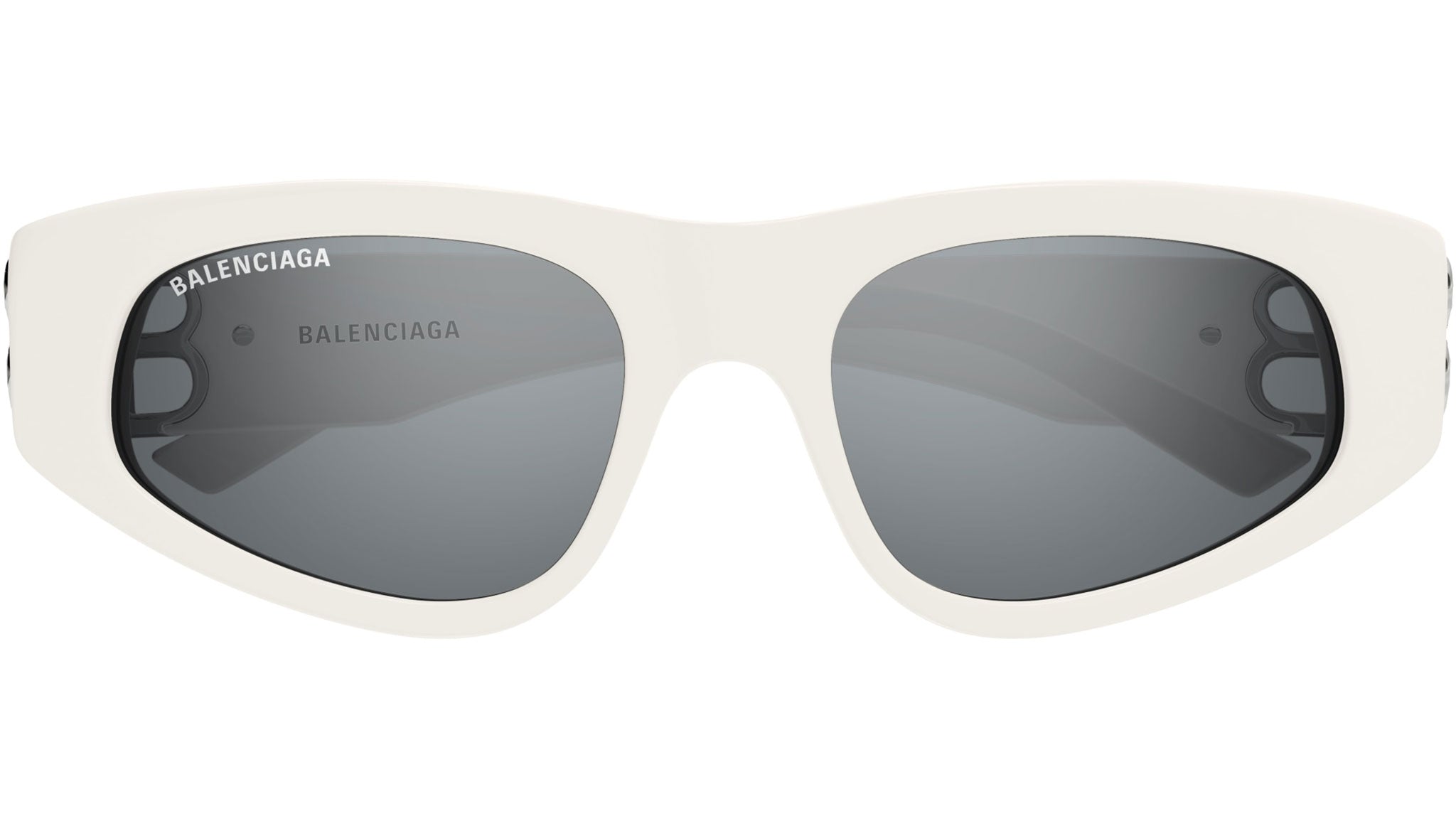 Occhiali da sole Balenciaga modello BB0095S linea Everyday codice colore 021 avorio tinta unita lucido in acetato forma cat eye con lenti color argento + grigio tinta unita.