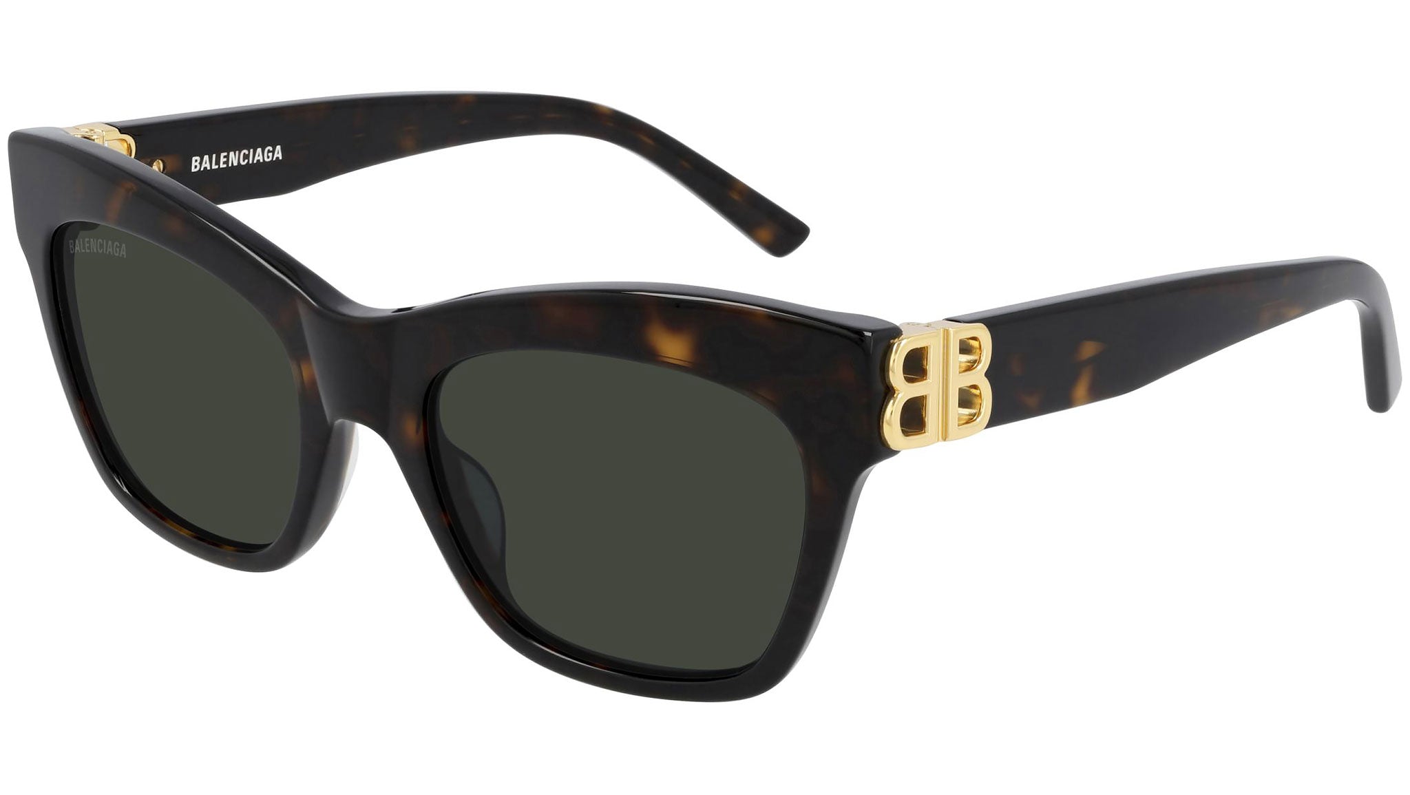 Occhiali da sole Balenciaga linea Everyday modello BB0132S 002, variante colore tartaruga scuro lucido con lenti color verde tinta unita.