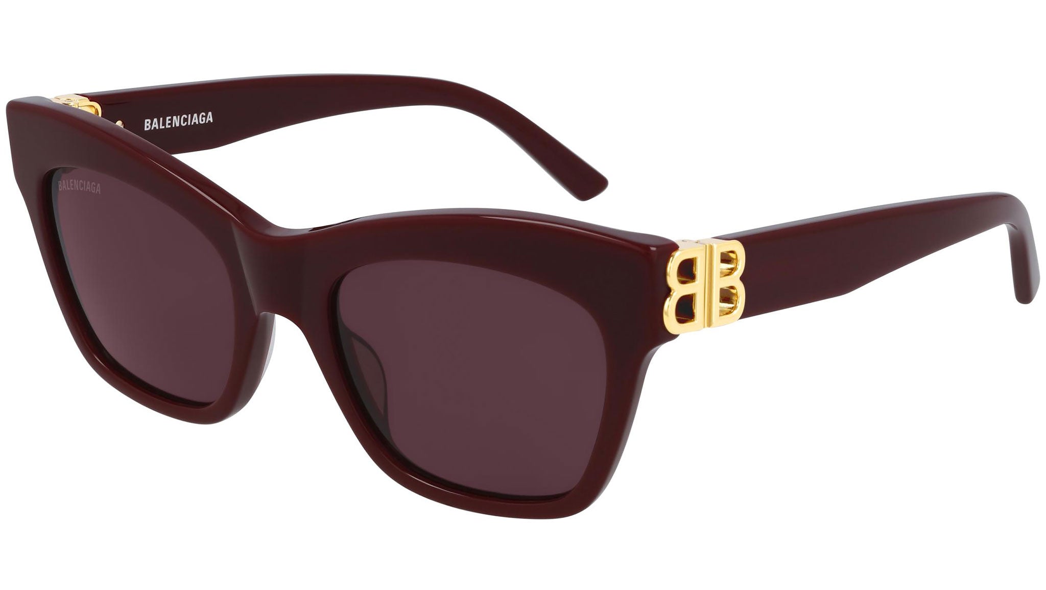 Occhiali da sole Balenciaga linea Everyday modello BB0132S 004, variante colore bordeaux tinta unita lucido con lenti color borgogna tinta unita.