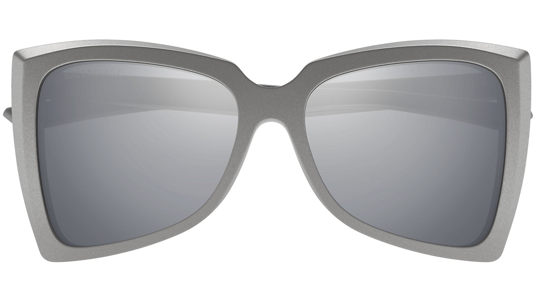 Occhiali da sole Balenciaga linea Everyday modello BB0174S 004, variante colore argento metallizzato lucido con lenti color grigio tinta unita e argento.