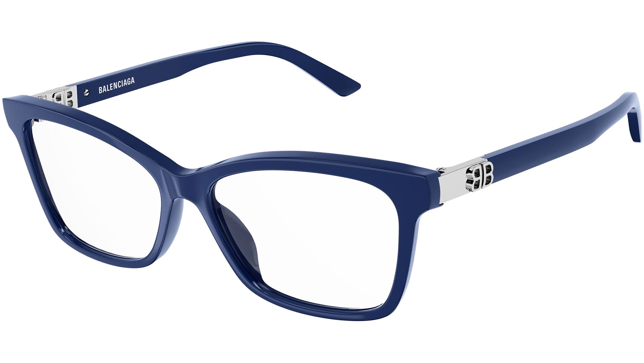 Occhiali da vista Balenciaga linea Everyday modello BB0186O 004, variante colore blu tinta unita lucido con astine color blu.