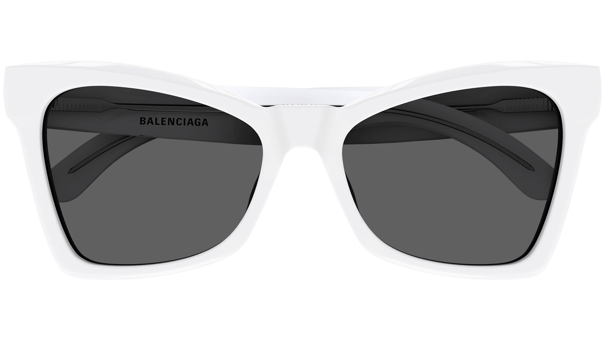 Occhiali da sole Balenciaga linea Everyday BB0231S codice colore 005 con montatura bianco tinta unita lucido e lenti color grigio tinta unita.