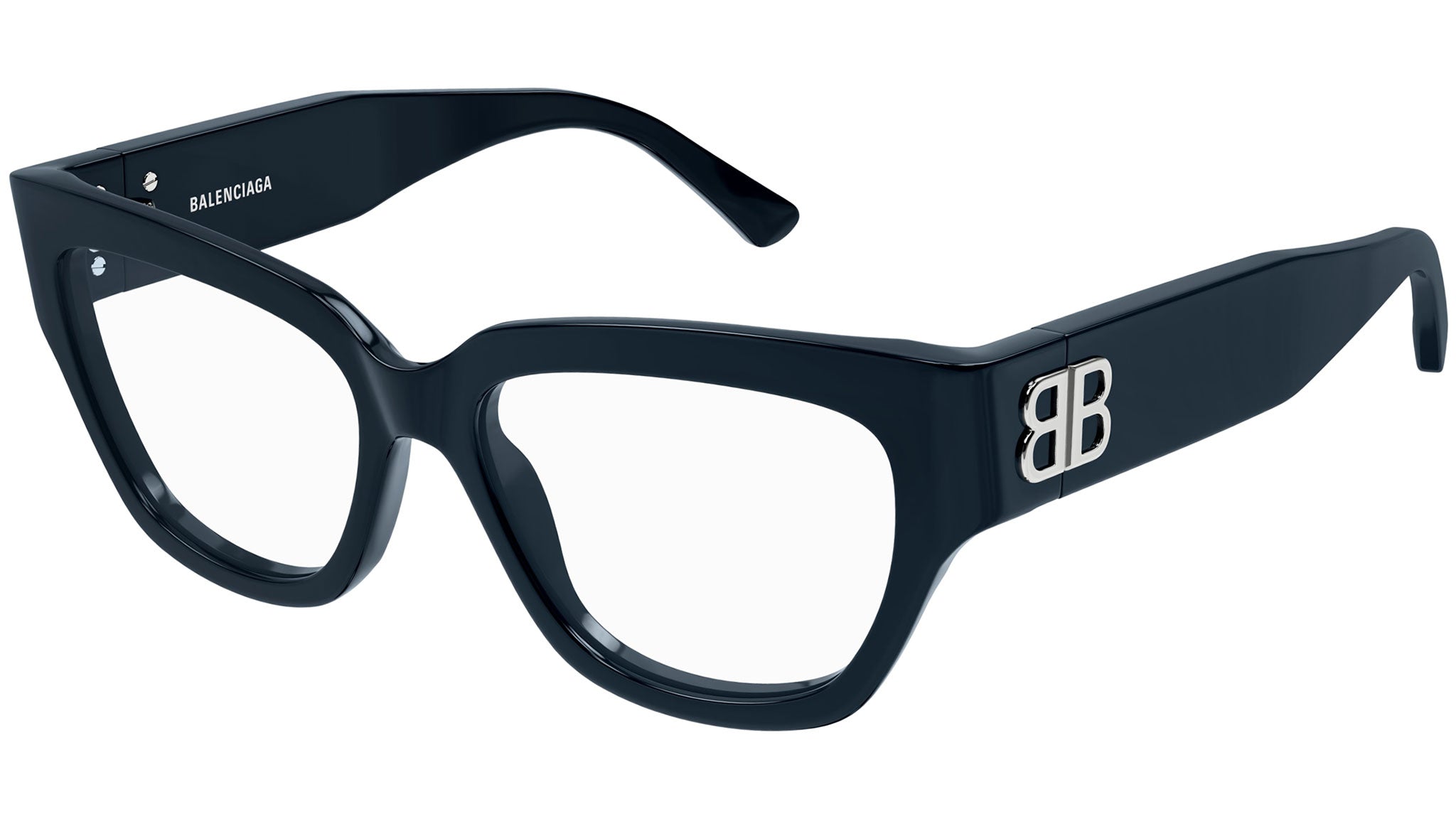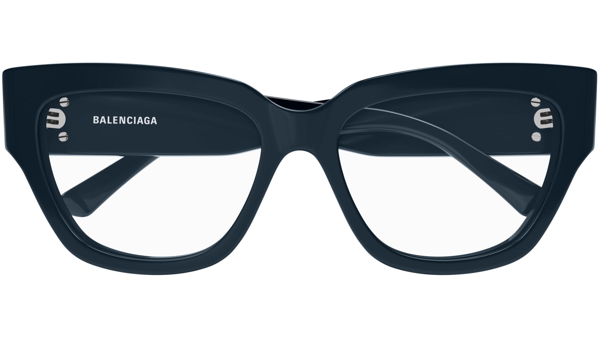Occhiali da vista Balenciaga modello BB0326O linea Everyday codice colore 005 blu navy solido lucido in acetato riciclato forma rectangle con aste color blu.