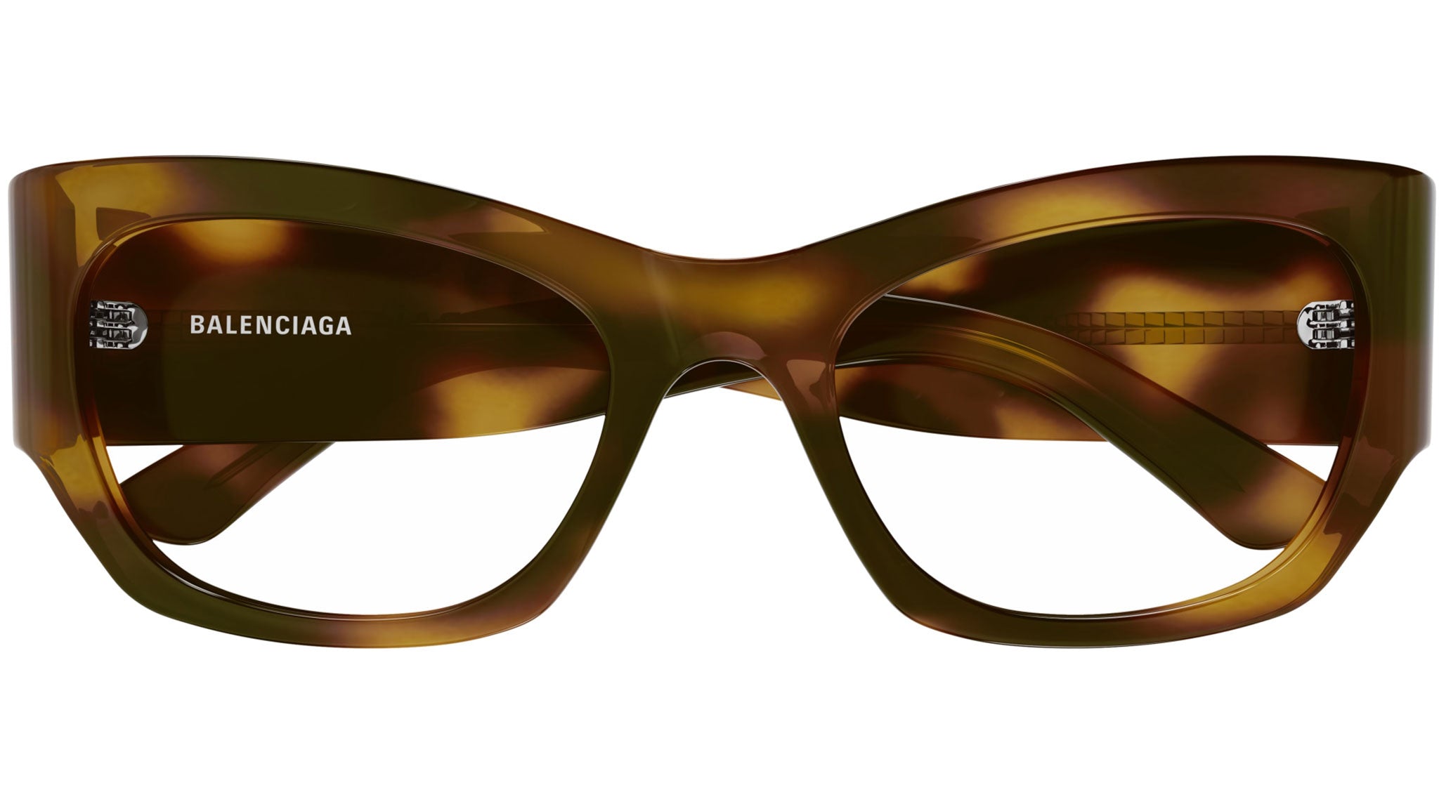 Occhiali da vista Balenciaga modello BB0333O linea Everyday codice colore 003 avana medio lucido in acetato riciclato forma cat eye con aste color tartaruga.