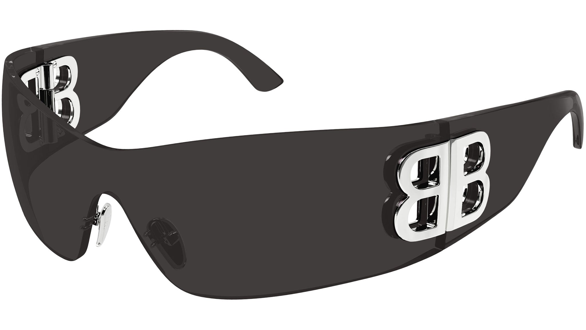 Occhiali da sole Balenciaga modello BB0359S linea Everyday codice colore 001 grigio tinta unita in nylon forma mascherina con aste color grigio e lenti color grigio tinta unita. Rivenditore autorizzato Balenciaga online. Gli occhiali vengono consegnati con custodia e accessori originali e sono coperti dalla garanzia ufficiale di 12 mesi del produttore.