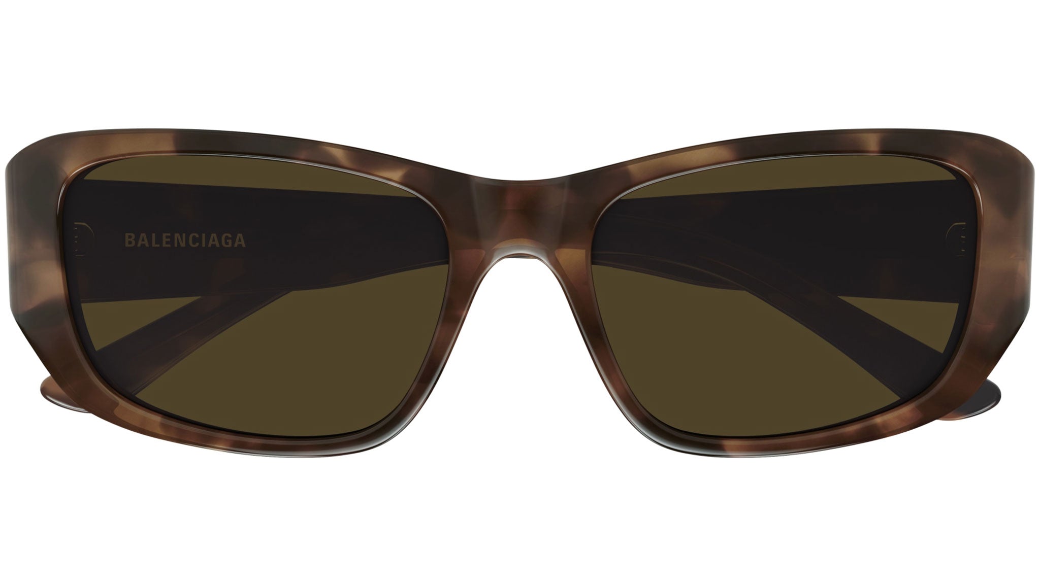 Occhiali da sole Balenciaga modello BB0365S linea Everyday codice colore 002 lucido marrone avana in acetato riciclato forma rettangolare con aste color tartaruga e lenti color marrone tinta unita. Rivenditore autorizzato Balenciaga online. Gli occhiali vengono consegnati con custodia e accessori originali e sono coperti dalla garanzia ufficiale di 12 mesi del produttore.