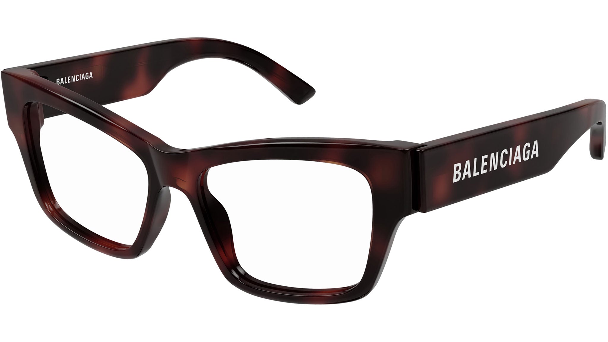 Occhiali da vista Balenciaga modello BB0378O linea Everyday codice colore 002 tartaruga scuro lucido in acetato riciclato forma a gatto con aste color tartaruga e lenti demo trasparenti. Rivenditore autorizzato Balenciaga online. Gli occhiali vengono consegnati con custodia e accessori originali e sono coperti dalla garanzia ufficiale di 12 mesi del produttore.