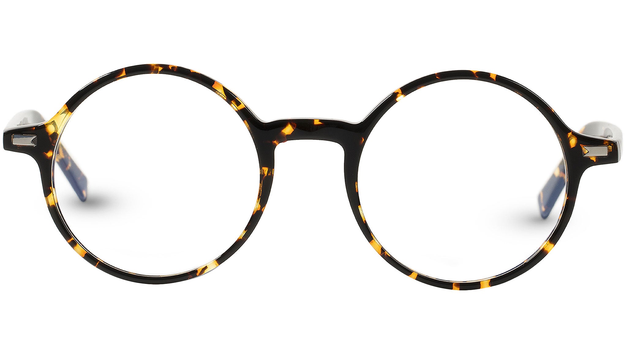 Acetate frame in tortoise. lenses with anti-glare filters.
